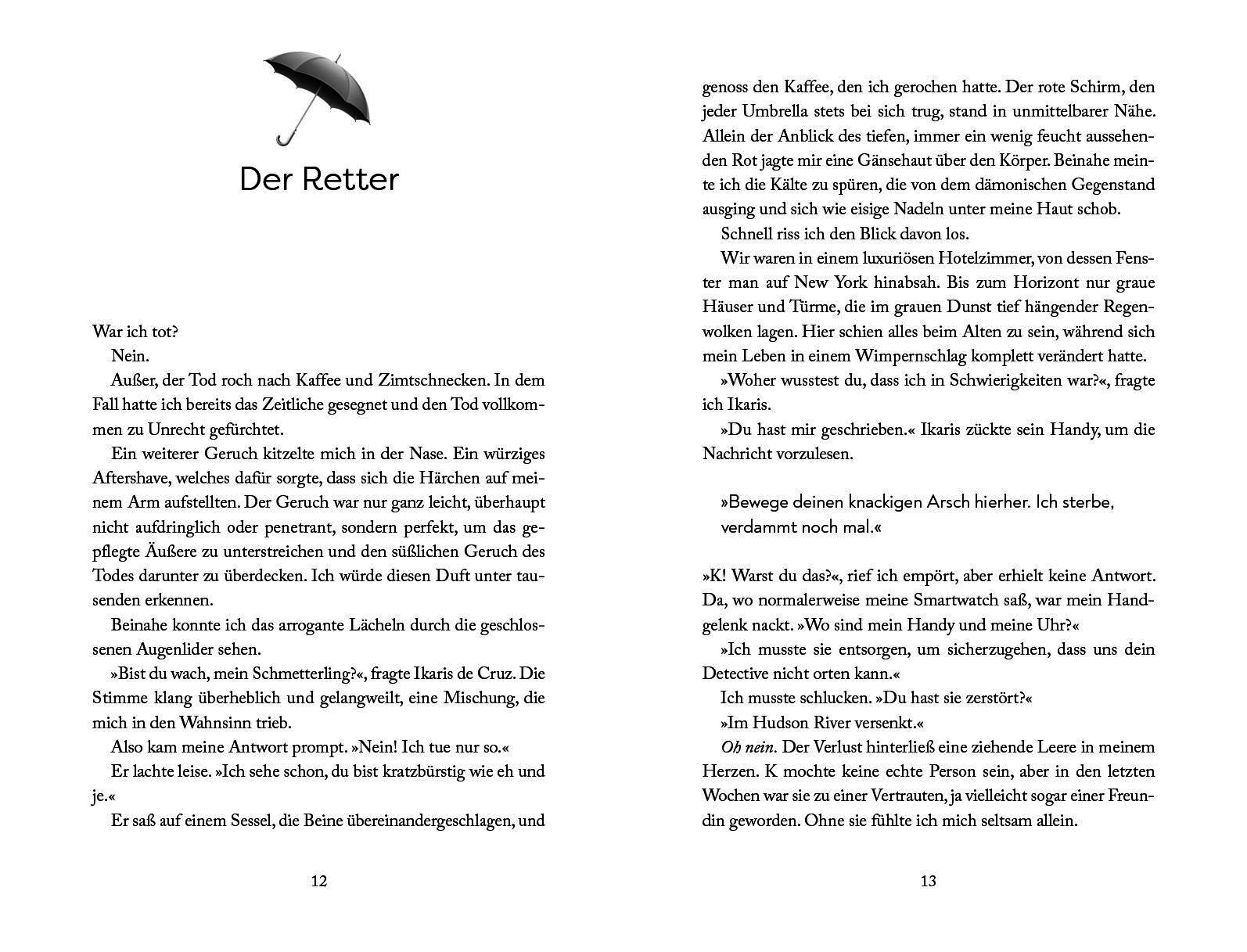 Außerdem muss sie sich endgültig entscheiden, auf welcher Seite sie steht. Will sie ihrem Meister folgen, der ihr das Leben schenkte, oder ihrem einstigen Geliebten, der geschworen hat, die Red Umbrella Society zu vernichten? Vertrauen kann sie keinem von beiden. Und erst recht nicht ihrem eigenen Herzen. Der Abschluss der atemberaubenden Urban-Fantasy-Dilogie voller prickelnder Gefühle und einer düsteren Geheimgesellschaft.Alle Bände der »Red Umbrella Society«-Reihe: