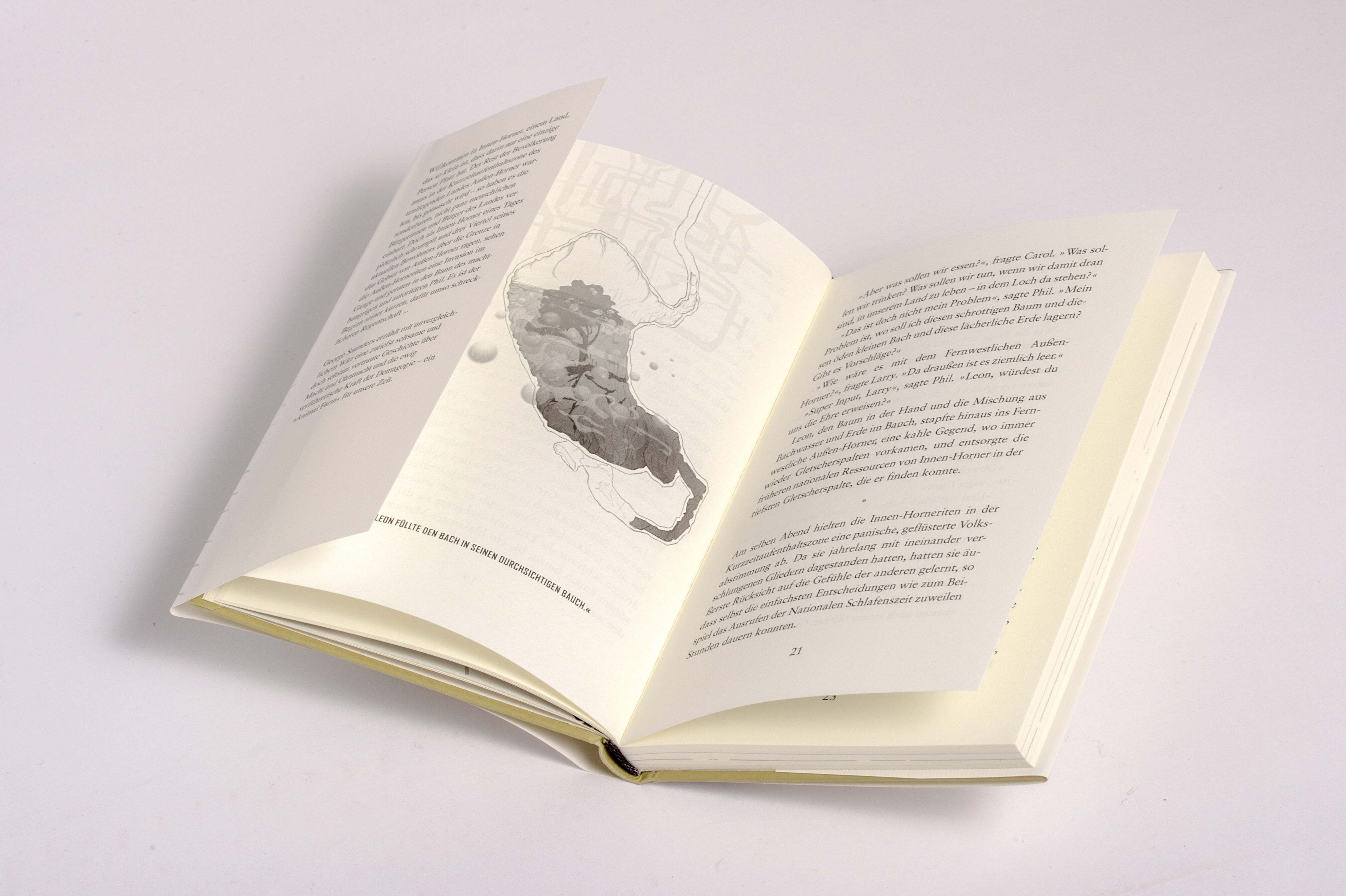 Willkommen in Innen-Horner, einem Land, das so klein ist, dass darin nur eine einzelne Person Platz hat. Der Rest der Bevölkerung muss in der Kurzzeitaufenthaltszone des umliegenden Landes Außen-Horner warten, bis getauscht wird - so haben es die sonderbaren, nicht ganz menschlichen Bürgerinnen und Bürger des Landes vereinbart. Doch als Innen-Horner eines Tages plötzlich schrumpft und drei Viertel seines aktuellen Bewohners über die Grenze in das Gebiet von Außen-Horner ragen, sehen die Außen-Horneriten eine Invasion im Gange und geraten in den Bann des machthungrigen und autoritären Phil. Es ist der Beginn seiner kurzen, dafür umso schrecklicheren Regentschaft...George Saunders erzählt mit unvergleichlichem Witz eine zutiefst seltsame und doch seltsam vertraute Geschichte über Macht und Ohnmacht und die ewig verführerische Kraft der Demagogie - ein "Animal Farm" für unsere Zeit.