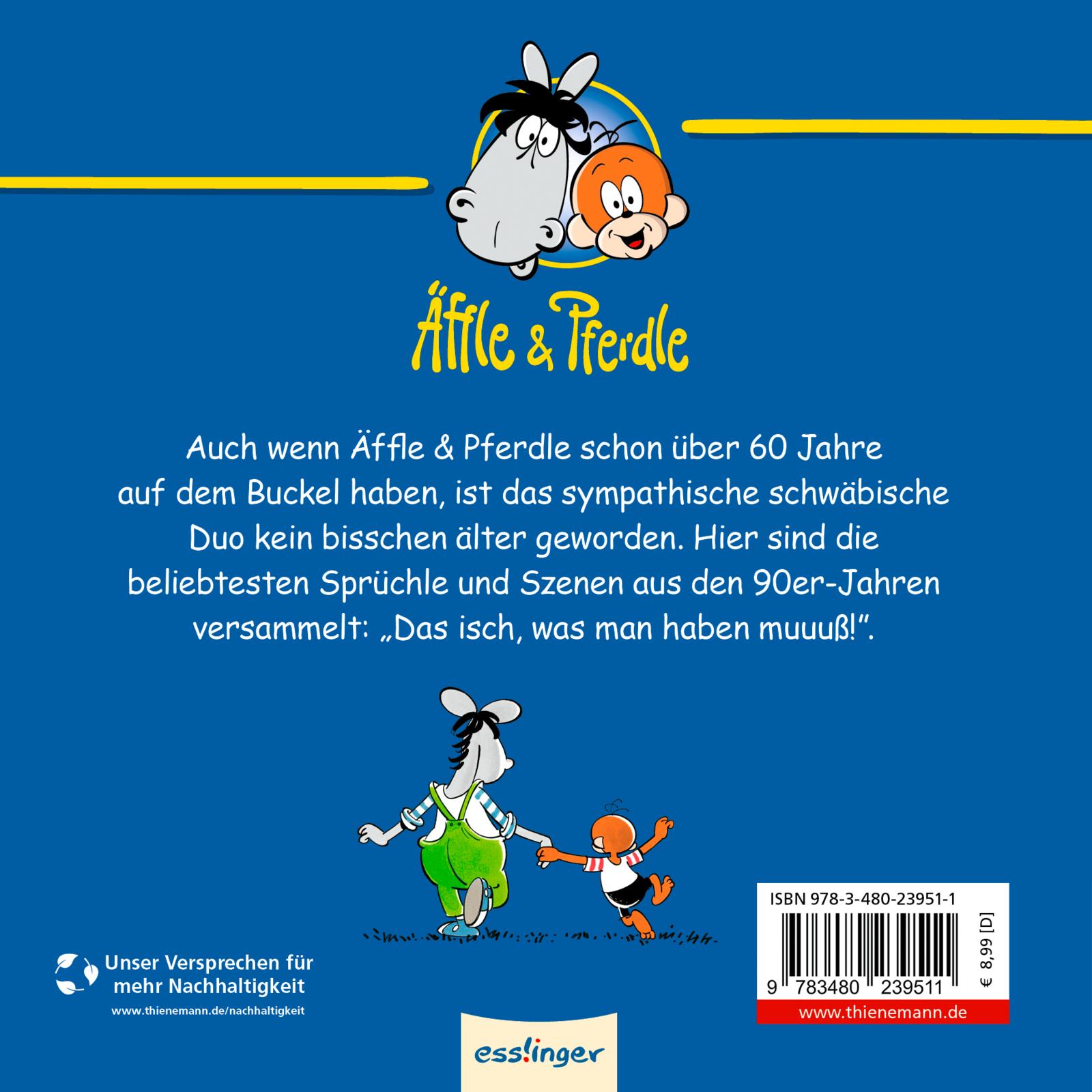 Mit den beliebten Originalzeichnungen aus den 90er-Jahren: Den Jubiläumsband von Äffle & Pferdle gibt es jetzt im kleineren Format zum Verschenken, für alle "ziemlich beschde" Freunde.