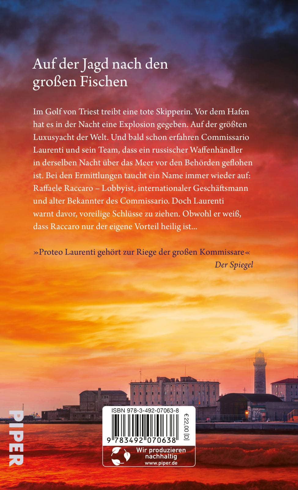 Was zieht Commissario Laurenti da aus dem Meer? Nahe der Segelyacht A, die seit den Sanktionen gegen Russland im Hafen von Triest festgesetzt ist, treibt ein tote Skipperin. In der Nacht hat es einen Anschlag auf das Schiff gegeben. Was hat die Leiche damit zu tun? Proteo Laurenti und sein Team stoßen auf ein Netz aus Gefälligkeiten, Eigeninteressen und Hinterzimmerdeals, in das die ganze Stadt verwickelt scheint.