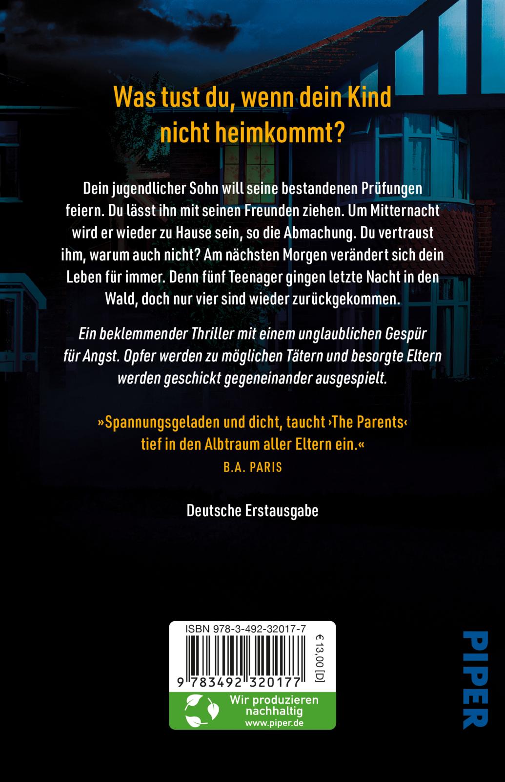 Dein jugendlicher Sohn will seine bestandenen Prüfungen feiern. Du lässt ihn mit seinen Freunden ziehen. Um Mitternacht wird er wieder zu Hause sein, so die Abmachung. Du vertraust ihm, warum auch nicht? Am nächsten Morgen verändert sich dein Leben für immer. Denn fünf Teenager sind letzte Nacht in den Wald gegangen, doch nur vier sind wieder herausgekommen. Und die Wahrheit zu sagen, könnte bedeuten, alles zu verlieren ...