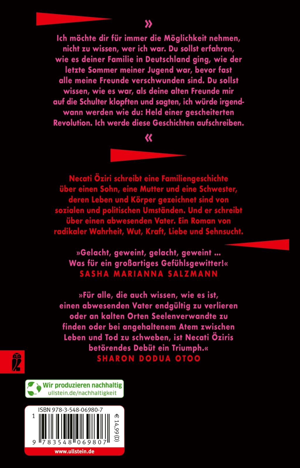 »Für alle, die auch wissen, wie es ist, einen abwesenden Vater endgültig zu verlieren oder an kalten Orten Seelenverwandte zu finden oder bei angehaltenem Atem zwischen Leben und Tod zu schweben, ist Necati Öziris betörendes Debüt ein Triumph.« Sharon Dodua Otoo