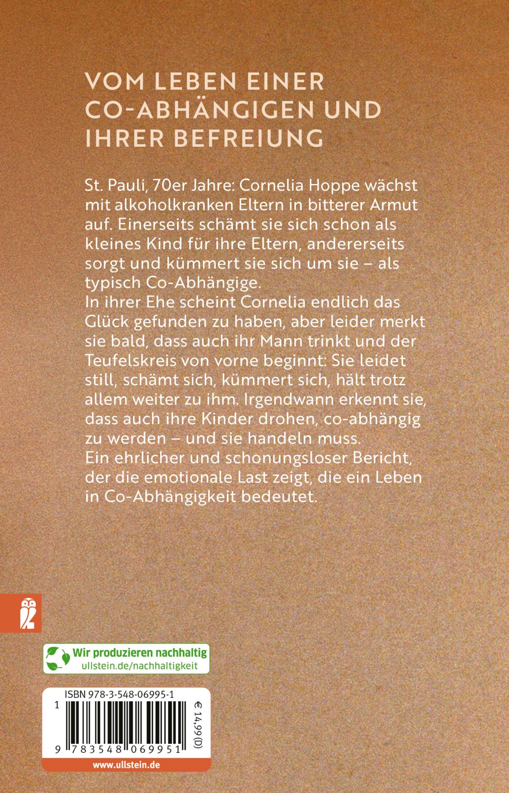 St. Pauli, 70er Jahre: Cornelia Hoppe wächst mit alkoholkranken Eltern in bitterer Armut auf. Ihr Spielplatz sind triste Trinkerkneipen mit zwielichtigen Gestalten. Einerseits schämt sich Cornelia schon als kleines Kind für ihre Eltern, andererseits sorgt und kümmert sie sich um sie - als typisch Co-Abhängige.