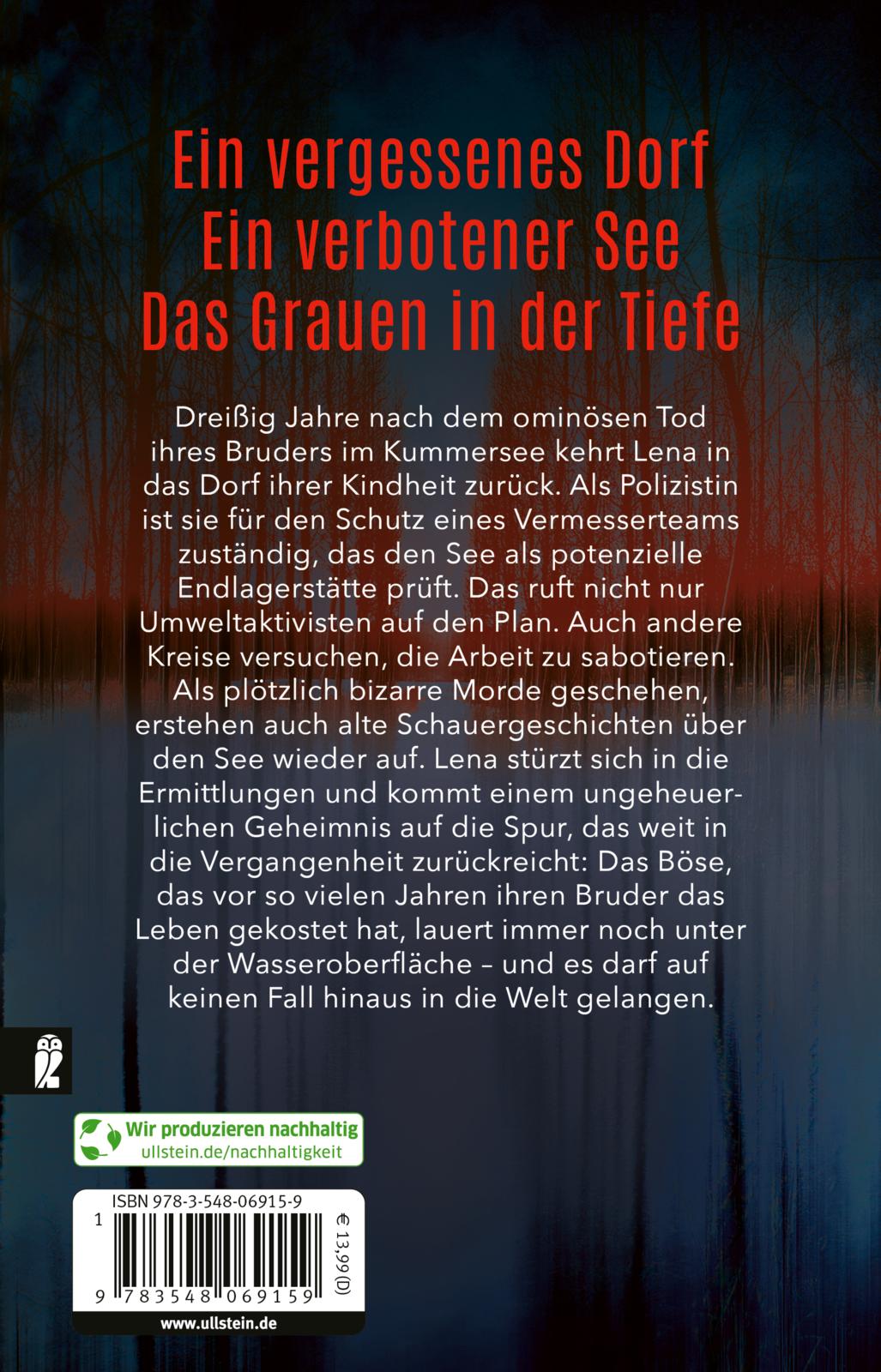 Dreißig Jahre nach dem ominösen Tod ihres Bruders im Kummersee kehrt Lena in das Dorf ihrer Kindheit zurück. Als Polizistin ist sie für den Schutz eines Vermesserteams zuständig, das den See als potenzielle Endlagerstätte prüft. Das ruft nicht nur Umweltaktivisten auf den Plan. Auch andere Kreise versuchen, die Arbeit zu sabotieren. Als plötzlich bizarre Morde geschehen, erstehen auch alte Schauergeschichten über den See wieder auf. Lena stürzt sich in die Ermittlungen und kommt einem ungeheuerlichen Geheimnis auf die Spur, das weit in die Vergangenheit zurückreicht: Das Böse, das vor so vielen Jahren ihren Bruder das Leben gekostet hat, lauert immer noch unter der Wasseroberfläche - und es darf auf keinen Fall hinaus in die Welt gelangen.