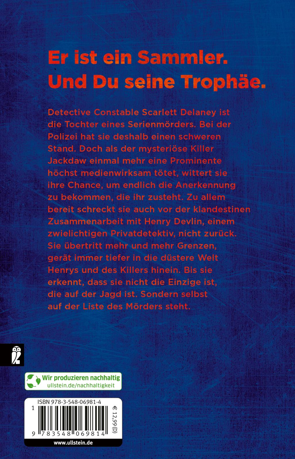 Detective Constable Scarlett Delaney, Tochter eines Serienmörders, heute bei der Polizei und dort aus naheliegenden Gründen mit schwerem Stand, wittert ihre Chance. Um den mysteriösen Killer Jackdaw zu fassen und damit endlich die Anerkennung zu bekommen, die ihr zusteht, ist sie zu allem bereit. Auch zur Zusammenarbeit mit Henry Devlin, einem zwielichtigen Privatdetektiv. Doch als sie sich immer tiefer in eine düstere Welt voller Halbwahrheiten und Lügen wagt und immer mehr Grenzen übertritt, wird Scarlett klar, dass sie nicht nur einen Mörder jagt. Sie steht auf seiner Liste. Und es könnte ein tödlicher Fehler gewesen sein, den Menschen in ihrer Umgebung zu vertrauen ...
