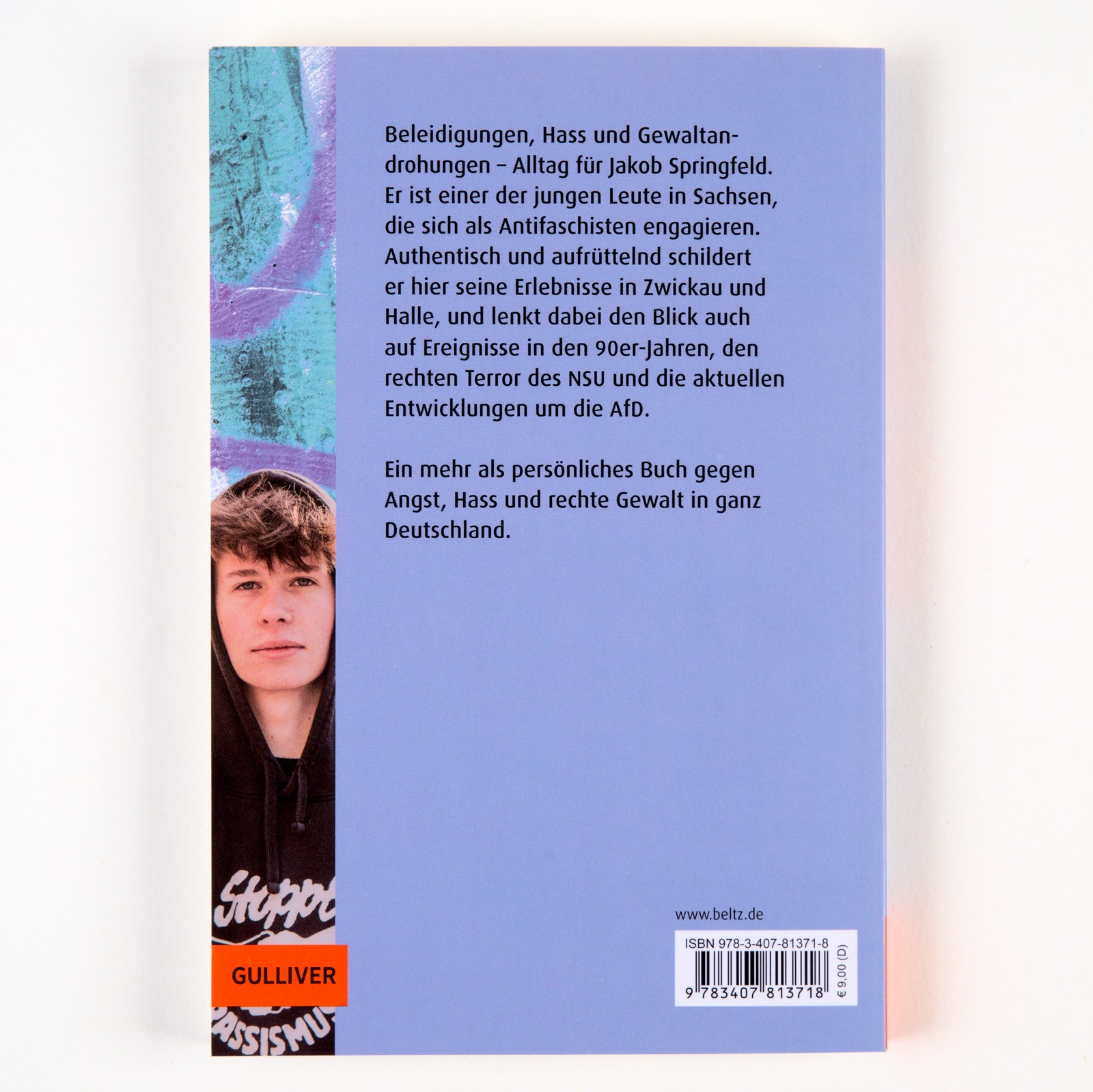 | Schlagworte | AfD • Antifaschismus • Asylbewerber • Begleitmaterial für Lehrer:innen • Biografie • Faschismus • Für den Deutschunterricht • für Klasse 7-9 • Jugendbuch ab 14 • Jugendbuch ab 14 Jahren • Klassenlektüre • Lebensgeschichte • linke Aktivisten • Memoir • Neonazis • NSU • Politisches Engagement • Punk • Radikalisierung • rechte Gewalt • Schullektüre • Terror |