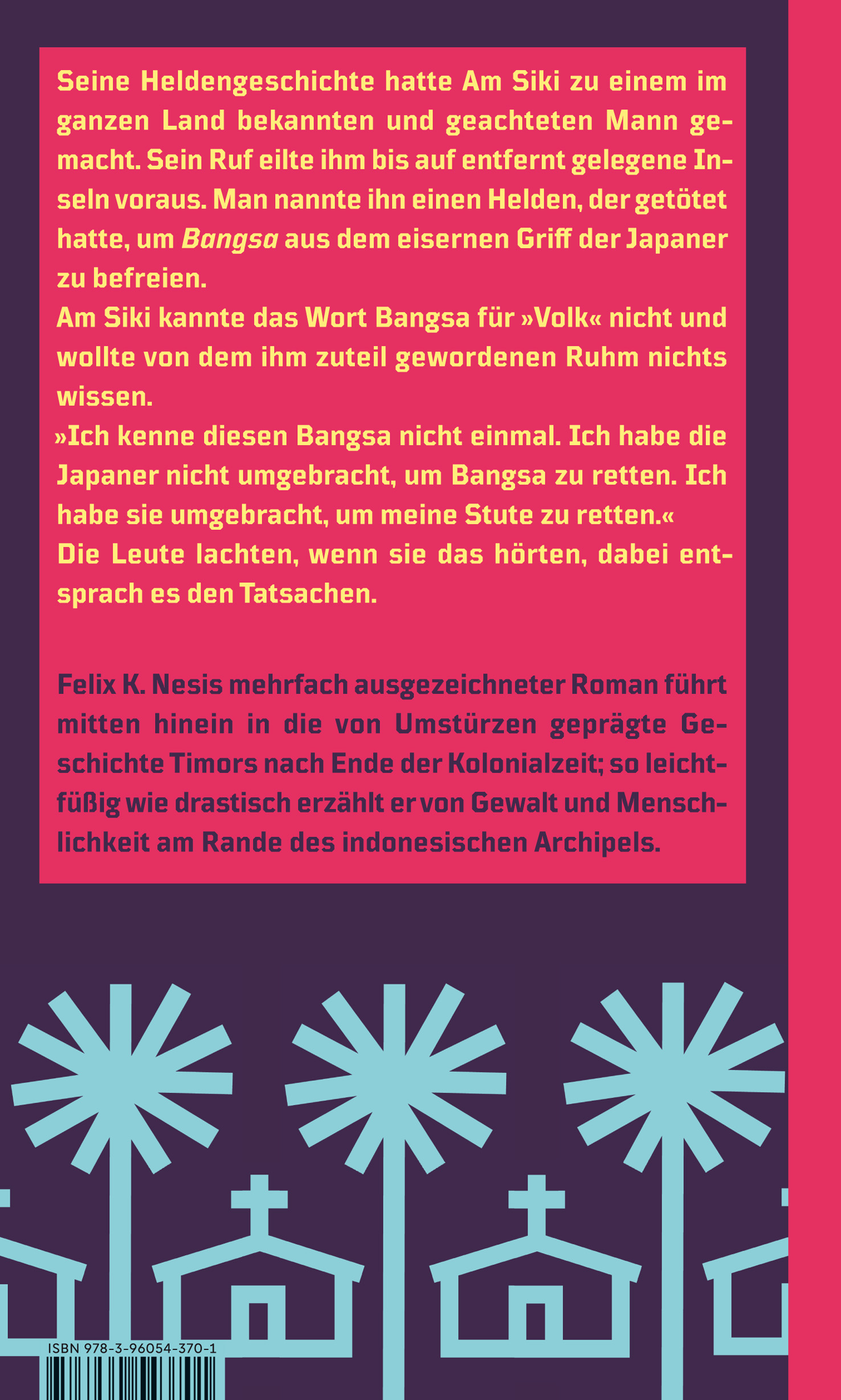| Schlagworte | Bürgerkrieg • Diktatur • Erzähltradition • Gewalt • Indonesien • Kirche • Kolonialzeit • Komik • Korruption • Orale Tradition • Osttimor • Satire • Spannung • Storytelling • Suharto • Timor • Timor-Leste • Überzeichnung • Unabhängigkeit • Westtimor • Witz |