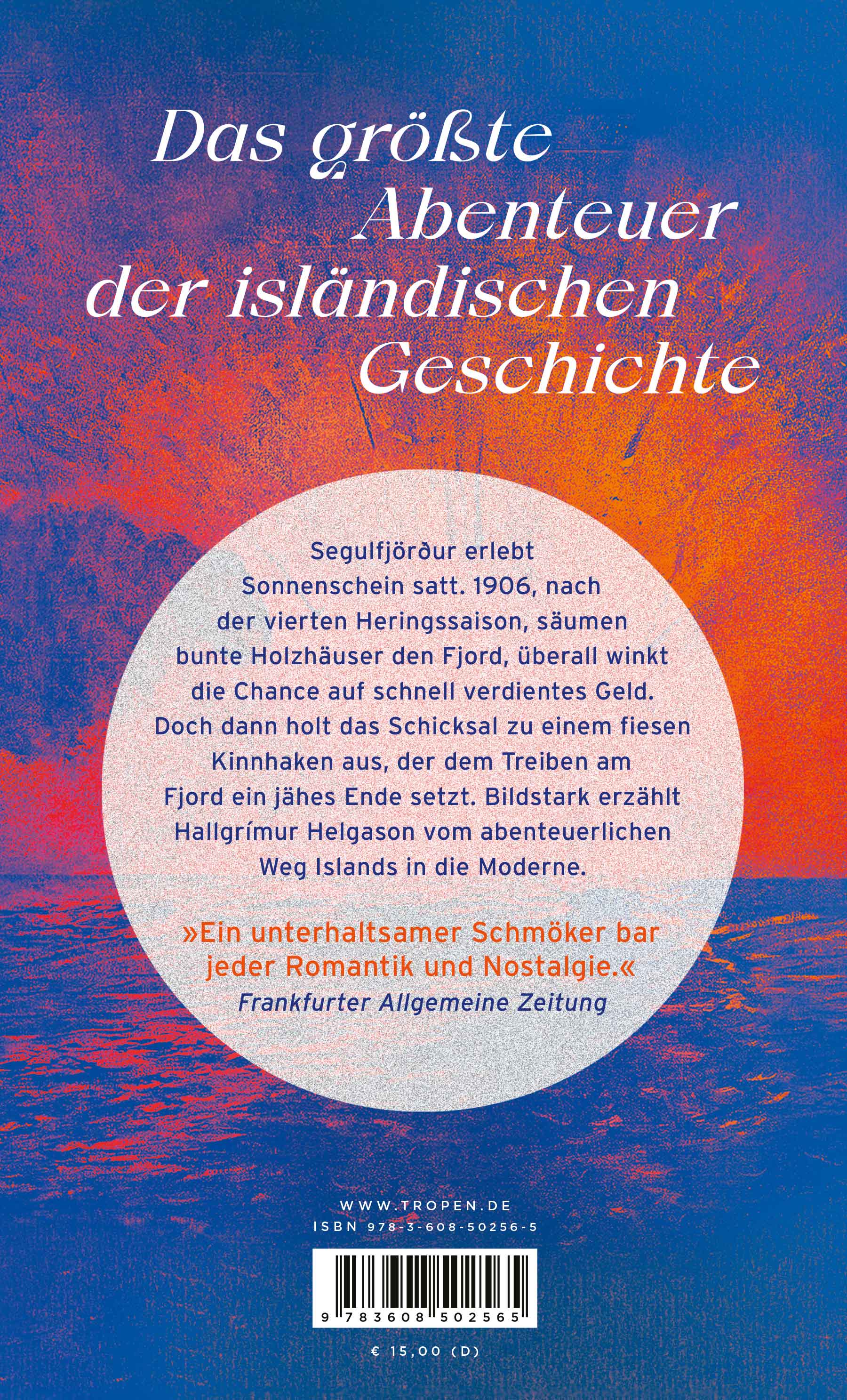 Segulfjörður erlebt Sonnenschein satt. 1906, nach der vierten Heringssaison, säumen bunte Holzhäuser den Fjord, überall winkt die Chance auf schnell verdientes Geld. Doch dann holt das Schicksal zu einem fiesen Kinnhaken aus, der dem Treiben am Fjord ein jähes Ende setzt. Bildstark erzählt Hallgrímur Helgason vom abenteuerlichen Weg Islands in die Moderne.