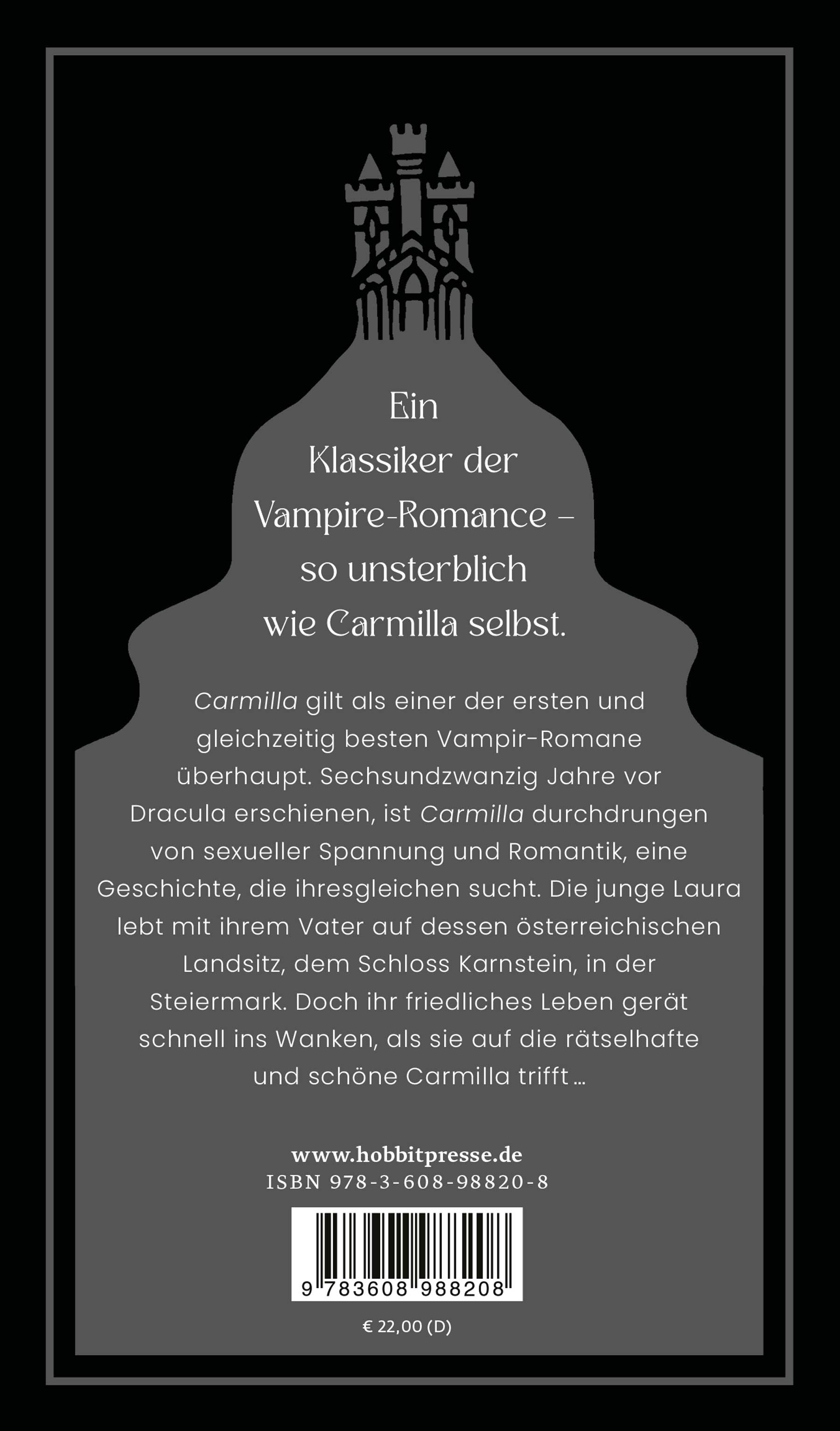 »Carmilla« gilt als einer der ersten und gleichzeitig besten Vampir-Romane überhaupt. Eine junge Frau namens Laura lebt mit ihrem Vater auf dessen österreichischen Landsitz, dem Schloss Karnstein, in der Steiermark. Doch Lauras friedliches Leben gerät schnell ins Wanken, als sie auf die rätselhafte und schöne Carmilla trifft.
