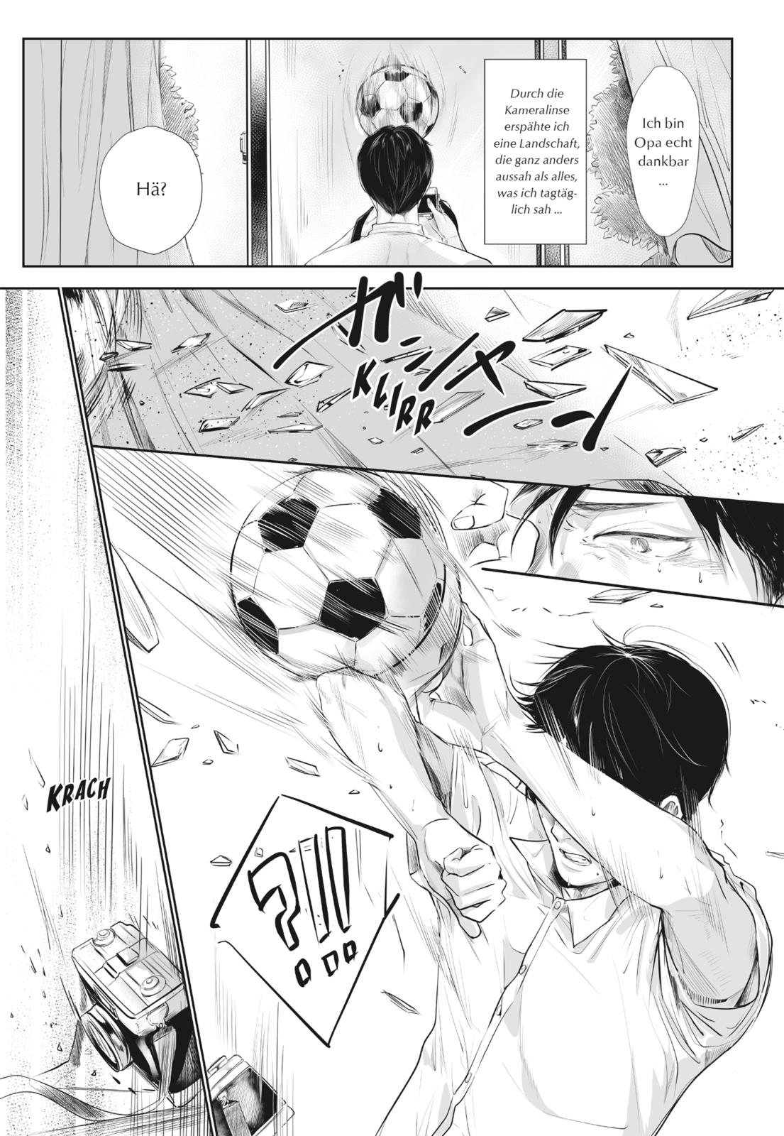 Youhei ist es gewohnt, allein zu sein und verbringt seine Tage damit, die Welt in sicherem Abstand durch die Linse seiner Kamera zu betrachten. Doch dann trifft ihn das Leben mit einem Schlag, als er von einem Fußball ins Gesicht getroffen wird. Der Schütze ist sein Mitschüler Ryou, der mit seiner energischen Art nicht nur im Fußball übers Ziel hinausschießt. Zwischen den beiden jungen Männern entwickeln sich zarte Gefühle, die sie ebenso beflügeln, wie verletzlich machen ...