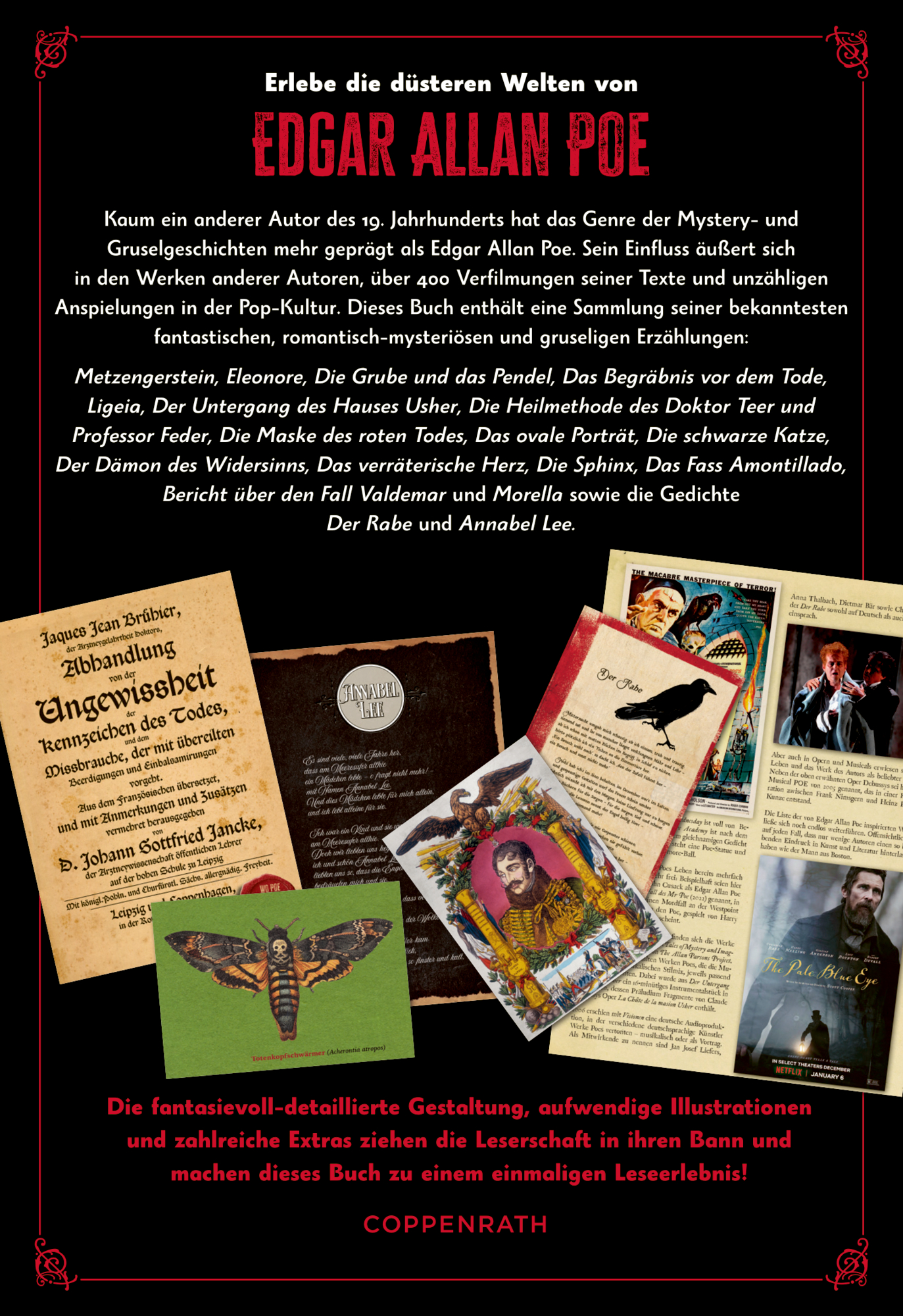 Nur wenige Autoren haben das Genre der Mystery- und Gruselgeschichten so sehr geprägt wie Edgar Allan Poe. Sein Einfluss findet sich in den Werken anderer Autoren, über 400 Verfilmungen seiner Texte und unzähligen Anspielungen in der Pop-Kultur. In dieser prachtvollen Schmuckausgabe sind einiger seiner bekanntesten fantastischen, romantisch-mysteriösen und gruseligen Erzählungen vereint: