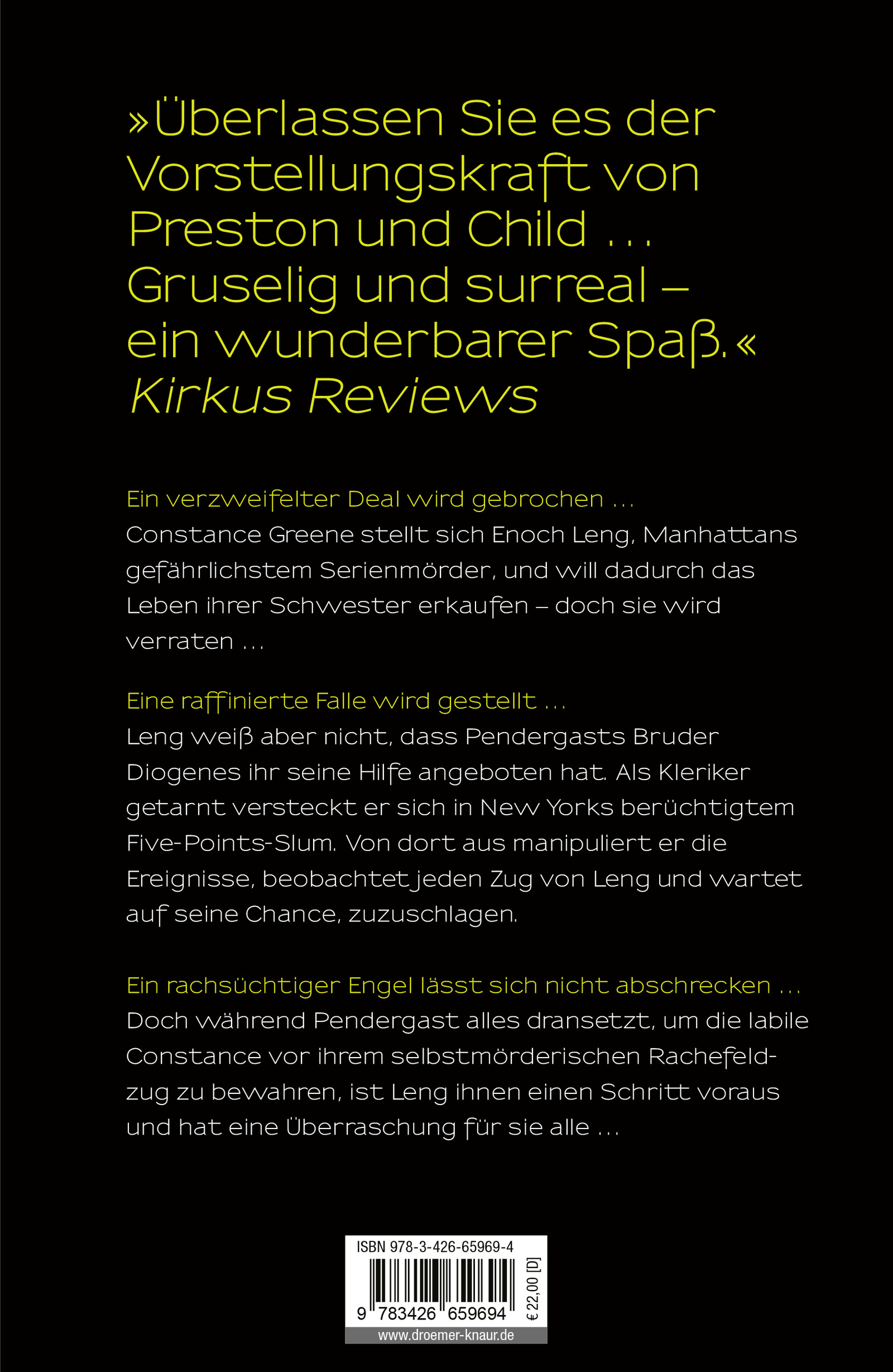 Während Aloysius Pendergast alles dransetzt, die labile Constance vor ihrem selbstmörderischen Rachefeldzug zu bewahren, will sie um jeden Preis ihre geliebte Schwester retten und Leng brutal ermorden. Doch Leng ist ihr stets einen Schritt voraus und hat eine Überraschung für sie alle ...
