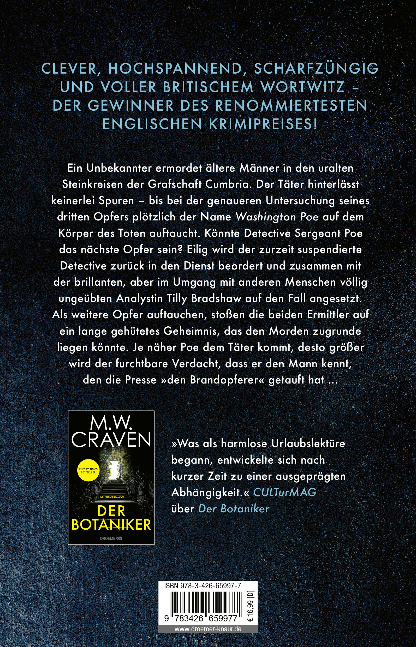 »M. W. Craven at it's best! Das Buch hat alles, was einen Thriller aus England auszeichnet: Spannung, schräge Charaktere, schwarzen Humor - und einen zu lösenden Fall, an dem Sherlock Holmes seine wahre Freude gehabt hätte.« Thomas Badtke n-tv.de 20250104