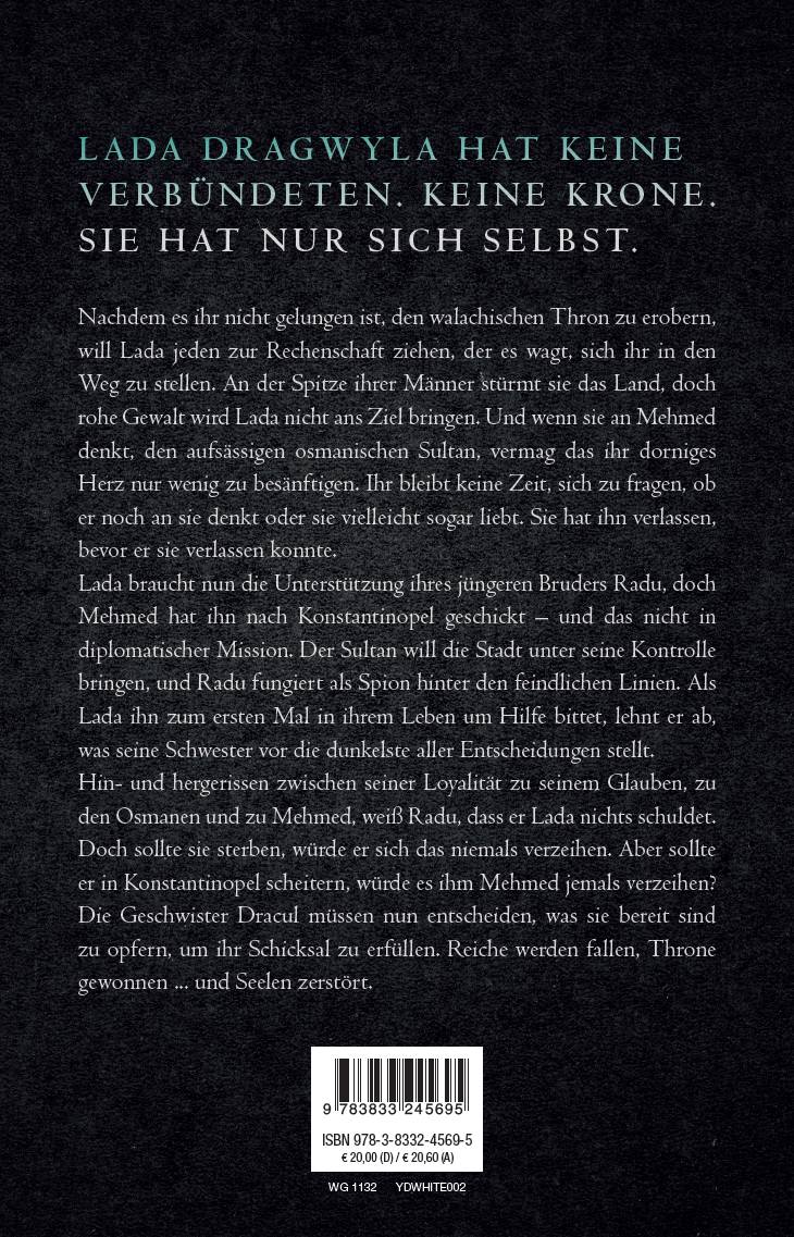 LADA DRAGWYLA HAT KEINE VERBÜNDETEN. KEINE KRONE. SIE HAT NUR SICH SELBST. Nachdem es ihr nicht gelungen ist, den walachischen Thron zu erobern, will Lada jeden zur Rechenschaft ziehen, der es wagt, sich ihr in den Weg zu stellen. An der Spitze ihrer Männer stürmt sie das Land, doch rohe Gewalt wird Lada nicht ans Ziel bringen. Und wenn sie an Mehmed denkt, den aufsässigen osmanischen Sultan, vermag das ihr dorniges Herz nur wenig zu besänftigen. Ihr bleibt keine Zeit, sich zu fragen, ob er noch an sie denkt oder sie vielleicht sogar liebt. Sie hat ihn verlassen, bevor er sie verlassen konnte. Lada braucht nun die Unterstützung ihres jüngeren Bruders Radu, doch Mehmed hat ihn nach Konstantinopel geschickt - und das nicht in diplomatischer Mission. Der Sultan will die Stadt unter seine Kontrolle bringen, und Radu fungiert als Spion hinter den feindlichen Linien. Als Lada ihn zum ersten Mal in ihrem Leben um Hilfe bittet, lehnt er ab, was seine Schwester vor die dunkelste aller Entscheidungen stellt. Hin- und hergerissen zwischen seiner Loyalität zu seinem Glauben, zu den Osmanen und zu Mehmed, weiß Radu, dass er Lada nichts schuldet. Doch sollte sie sterben, würde er sich das niemals verzeihen. Aber sollte er in Konstantinopel scheitern, würde es ihm Mehmed jemals verzeihen? Die Geschwister Dracul müssen nun entscheiden, was sie bereit sind zu opfern, um ihr Schicksal zu erfüllen. Reiche werden fallen, Throne gewonnen ... und Seelen zerstört.Die Eroberer-Trilogie im ÜberblickBand 1: Das Dunkle in mirBand 2: Mein ist die MachtBand 3: Wir sind die Flamme
