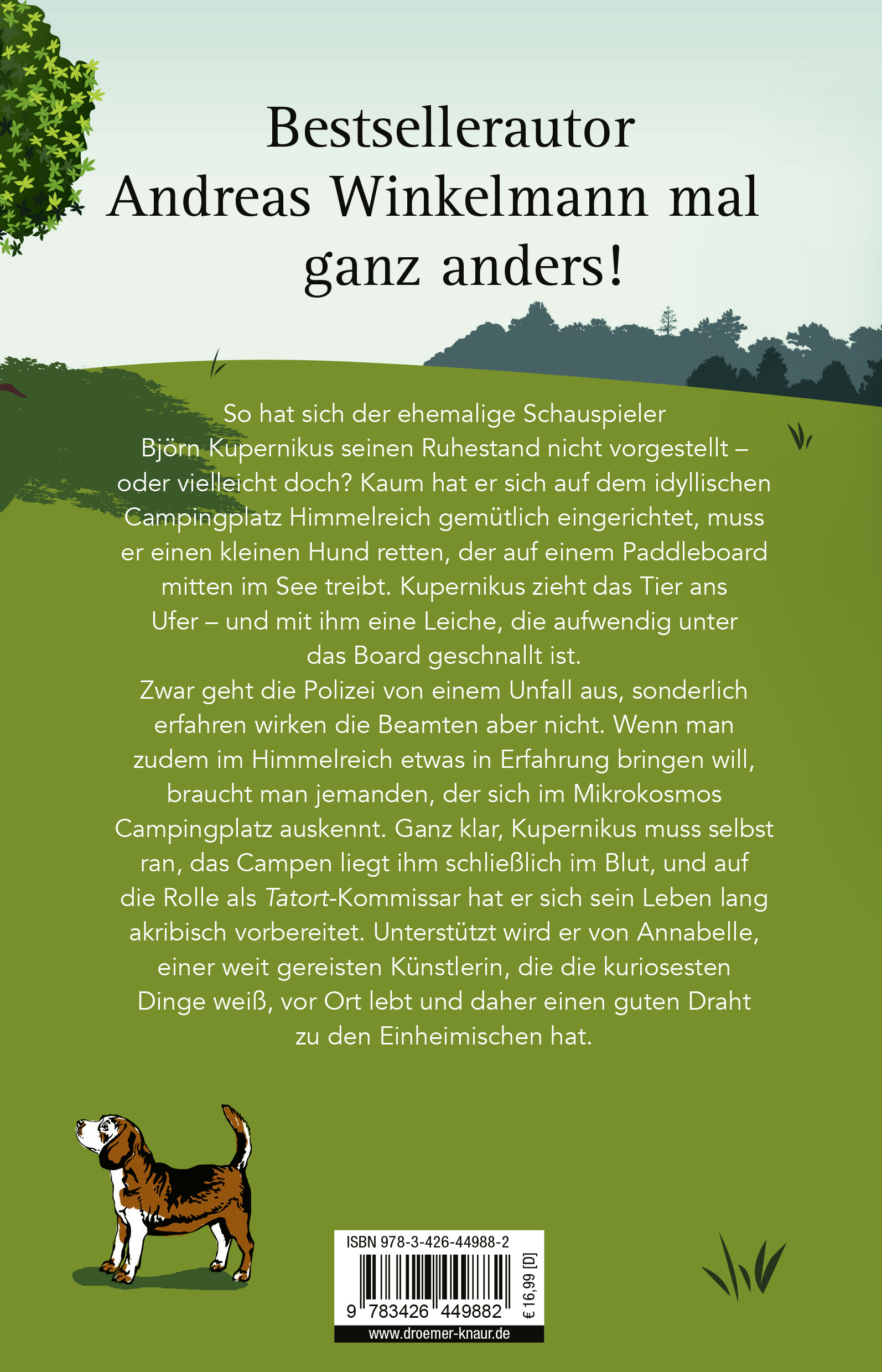Zwar geht die Polizei von einem Unfall aus, sonderlich erfahren wirken die Beamten aber nicht. Wenn man zudem im Himmelreich etwas in Erfahrung bringen will, braucht man jemanden, der sich im Mikrokosmos Campingplatz bestens auskennt. Ganz klar, Kupernikus muss selbst ran, das Campen liegt ihm schließlich im Blut und auf die Rolle als Tatort-Kommissar hat er sich sein Leben lang akribisch vorbereitet. Unterstützt wird er von Annabelle, einer weitgereisten Künstlerin, die die kuriosesten Dinge weiß, vor Ort lebt und daher einen guten Draht zu den Einheimischen hat ...