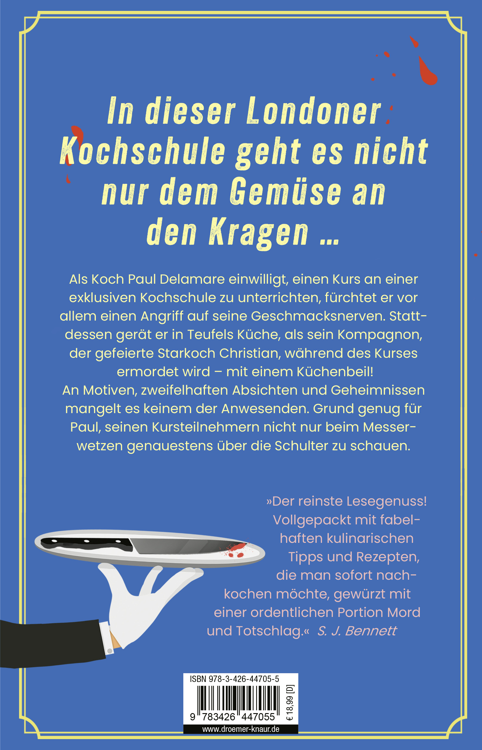 Als Koch Paul Delamare einwilligt, an einer exklusiven Kochschule in Belgravia aushilfsweise einen Kurs zu unterrichten, fürchtet er vor allem einen Angriff auf seine Geschmacksnerven. Stattdessen gerät er in Teufels Küche, als sein Kompagnon, der gefeierte Starkoch Christian, während des Kurses ermordet wird.