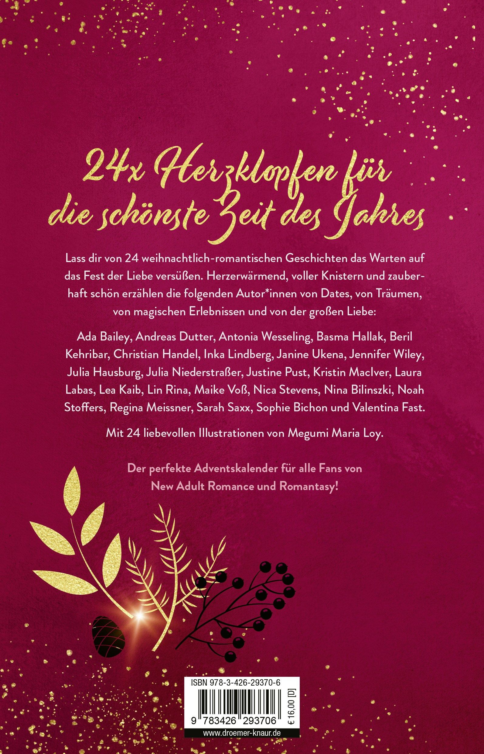 | Schlagworte | Adventskalender • Adventskalender 2024 • Adventskalender 2025 • Adventskalender Geschichten • adventskalender illustriert • Adventskalender in Buchform • Adventskalender Liebesgeschichten • Adventskalender mit Illustrationen • Anthologie Kurzgeschichte • buch weihnachten • knaurromance • Knaur Romance • New Adult Geschichten • New Adult Geschichten Sammlung • Romance • Romance-Weihnachtsanthologie • Romantasy • Romantasy-Weihnachtsanthologie • Weihnachten • Weihnachtsanthologie |