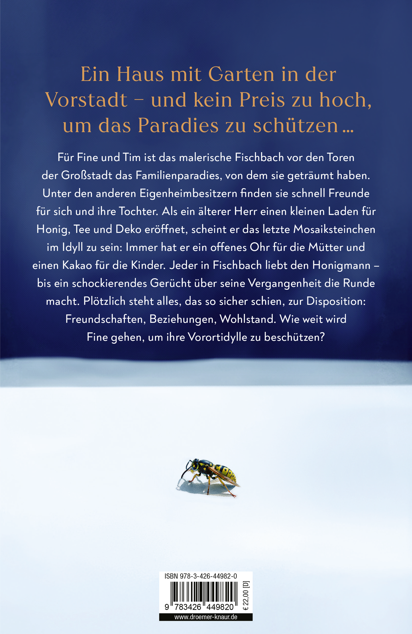 Jeder in Fischbach liebt den Honigmann - bis ein schockierendes Gerücht über seine Vergangenheit die Runde macht. Plötzlich steht alles, das so sicher schien, zur Disposition: Freundschaften, Beziehungen, Wohlstand. Wie weit wird Fine gehen, um ihre Vorortidylle zu beschützen?