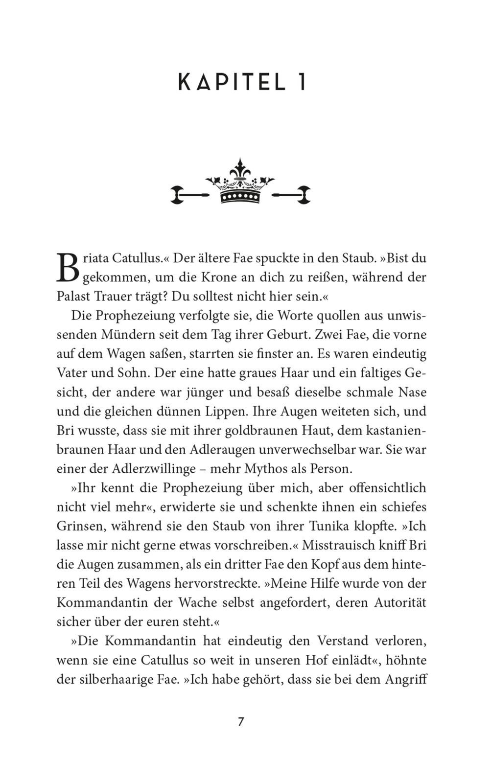 Als die Königin des Westlichen Hofes umgebracht wird, ist die Fae-Kriegerin Briata fest entschlossen, den Mörder aufzuspüren. An der Seite der trauernden Prinzessin Lina bricht sie ins Reich des Westens auf, um die Hexenjäger zu besiegen. Doch als sie am Hof ankommt, wird sie mit einer verhängnisvollen Prophezeiung konfrontiert: Angeblich wird Bri dem dortigen Herrscher die Krone entreißen! Zudem sind die Hexenjäger weiterhin auf königliches Blut aus, sodass Bri alles daran setzen muss, Prinzessin Linas Leben zu schützen. Diese ist noch immer unter Schock nach dem Mord an ihrer Mutter; sie vertraut Bri nicht und lässt diese nur widerwillig als eine ihrer Wachen dienen.