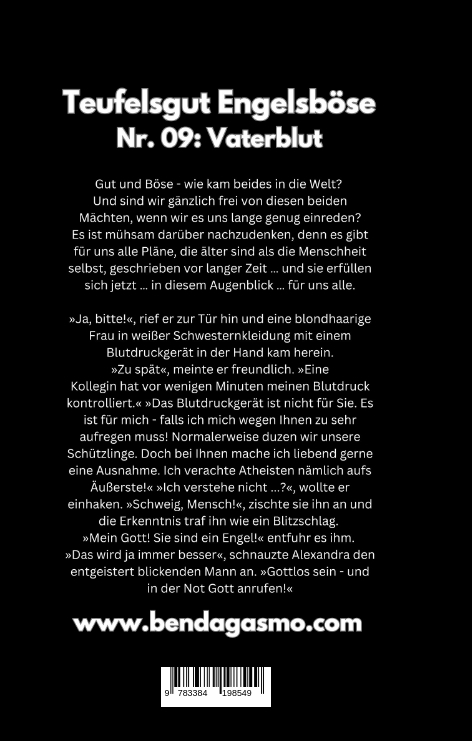 Gut und Böse - wie kam beides in die Welt? Und sind wir gänzlich frei von diesen beiden Mächten, wenn wir es uns lange genug einreden?Es ist mühsam darüber nachzudenken, denn es gibt für uns alle Pläne, die älter sind als die Menschheit selbst, geschrieben vor langer Zeit ... und sie erfüllen sich jetzt ... in diesem Augenblick ... für uns alle. Jemand klopfte an die Krankenzimmertür. »Ja, bitte!«, rief er zur Tür hin und eine blondhaarige Frau in weißer Schwesternkleidung kam herein. Sie sah den Mann ziemlich reserviert an, musterte ihn von oben bis unten. Sie hatte ein Blutdruckgerät in der Hand. »Zu spät«, meinte er freundlich. »Eine Kollegin hat vor wenigen Minuten meinen Blutdruck kontrolliert.« »Das Blutdruckgerät ist nicht für Sie«, antwortete die Frau sachlich. »Es ist für mich - falls ich mich wegen Ihnen zu sehr aufregen muss! Zu Beginn müssen Sie eines wissen: Normalerweise duzen wir unsere Schützlinge. Doch bei Ihnen mache ich liebend gerne eine Ausnahme. Ich verachte Atheisten nämlich aufs Äußerste!« »Ich verstehe nicht ...?«, wollte er einhaken. »Schweig, Mensch!«, zischte sie ihn an und die Erkenntnis traf ihn wie ein Blitzschlag. »Mein Gott! Sie sind ein Engel!« entfuhr es ihm. »Das wird ja immer besser«, schnauzte Alexandra den entgeistert blickenden Mann an. »Gottlos sein - und in der Not Gott anrufen!«"Teufelsgut Engelsböse" - eine abgeschlossene 25-teilige Mystery-Serie für Erwachsene von Sabine & Thomas Benda