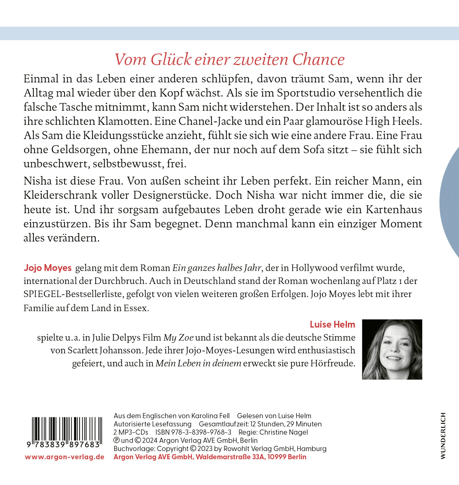 | Schlagworte | Bestseller aus Großbritannien • Bestsellerautorin • Ein ganzes halbes Jahr • Freundschaft • Geschenk für Frauen • Hörbuch fürs Herz • Internationaler Frauentag • Jojo Moyes Neuerscheinung 2023 • Lou Clark • Rollentausch • Roman Besteller Frauen • Romane für Frauen • Romane Neuerscheinungen 2023 • Someone Else's Shoes deutsch • Spiegel Besteller Autorin • Spiegel Bestseller 2023 • Spiegel Bestseller 2024 • Spiegel-Bestsellerautorin • Starke Frauen |