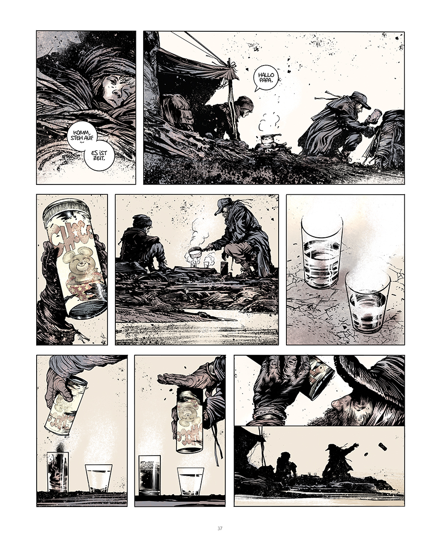Die Welt nach ihrem Untergang. Unter den Überlebenden ein todkranker Vater und sein kleiner Sohn. Durch Trümmerlandschaften und Aschewolken ziehen sie nach Süden, um dem Winter zu entkommen. Ihre wenigen Habseligkeiten trägt ein Einkaufswagen. Ansonsten haben sie nichts als ihre Kleider am Leib, einen Revolver mit zwei Patronen - und einander. DIE STRASSE ist die hypnotisierende Geschichte einer hoffnungslosen Reise und eine düstere Parabel auf das Leben. Nach BRODECKS BERICHT nimmt sich Manu Larcenet erneut eines bedeutenden literarischen Werks an. Entstanden ist ein opulenter Comic, der die dystopische Welt des Romans bildgewaltig einfängt. Aus einem modernen Klassiker hat Manu Larcenet ein kraftvolles und zugleich ergreifendes Werk von düsterer/erhabener Schönheit gemacht.