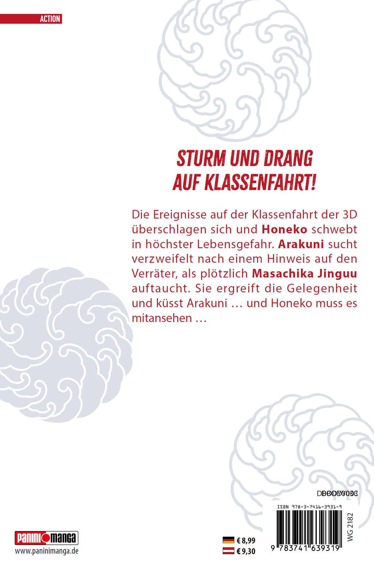Honeko Akabanes Bodyguard vereint spannende Abenteuer, witzige Situationen und herzerwärmende Momente zu einem grandiosen Gesamtpaket!Arakuni aus der 3D der Sousouji-Highschool traut seinen Ohren nicht, als er erfährt, dass seine Klassenkameradin Honeko das Ziel von mehreren Auftragskillern ist. Und jetzt wird ausgerechnet er von einem Gangsterboss gebeten, Honeko zu beschützen und sicherzustellen, dass sie ihr letztes Schuljahr unbeschadet übersteht. Allerdings darf Honeko von all dem nichts erfahren!Das erwartet dich in Band 3:Sturm und Drang auf Klassenfahrt!Die Ereignisse auf der Klassenfahrt der 3D überschlagen sich und Honeko schwebt in höchster Lebensgefahr. Arakuni sucht verzweifelt nach einem Hinweis auf den Verräter, als plötzlich Masachika Jinguu auftaucht. Sie ergreift die Gelegenheit und küsst Arakuni ... und Honeko muss es mitansehen ...Für Fans von Action-, Abenteuer-, Romance- und Comedymanga wie Assassination Classroom und Kaguya-sama: Love is war!