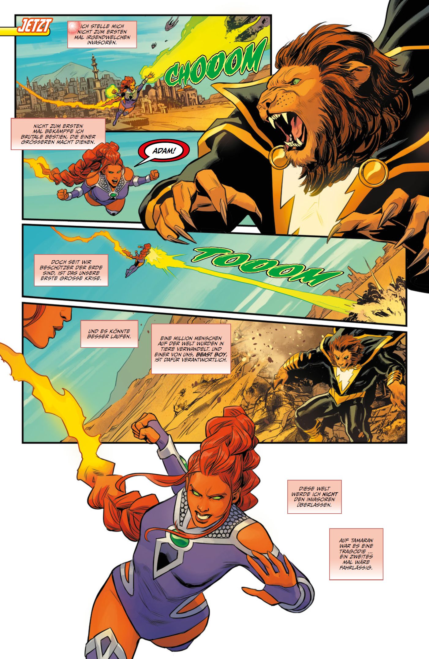 NEUE VORMACHT von Christian HeißDie Titans mit Nightwing, Flash, Donna Troy, Cyborg, Starfire, Beast Boy und Raven sind die neue Helden-Supermacht im DCUniversum - und stecken mitten in ihrer ersten großen Krise, die die gesamte Erde erfasst! Alles begann mit der Kirche der Ewigkeit, die unter ihrem neuen Anführer Brother Eternity eine neue goldene Ära der Entdeckungen für die Menschheit propagierte. Selbst Ex-Titan Tempest wies eine Einladung zum Team seiner früheren Freunde zurück und schloss sich lieber Eternitys neuem Kult an. Jedoch nicht freiwillig, wie sich zeigte, denn über tentakelbewehrte Aliens, die sich durch den Mund den Weg ins Körperinnere bahnen, hat Eternity volle Gedankenkontrolle über all seine Schäfchen. Eternity selbst ist ein getarnter Angehöriger des Volkes von Tamaran, eines Planeten, von dem auch Titans-Mitglied Starfire stammt. Die Kirche der Ewigkeit schickte eine Erkundungsmission zum Saturnmond Titan aus, die jedoch nicht dem Wohle der Menschheit diente. Brother Eternity sorgte dafür, dass der Necrostar entfesselt wurde, eine gigantische und tödliche Alien-Kreatur, die bei ihrem letzten Angriff auf Tamaran nur durch den seesternartigen Sterneneroberer Starro besiegt werden konnte. Um den sich der Erde nähernden Necrostar aufzuhalten, wagte Beast Boy alles und verwandelte sich in einen gigantischen Sterneneroberer. Zwar gelang es ihm, den Necrostar in den Bumerangnebel zu verbannen, doch durch das Wirken von Dr. Hate, einem Agenten der machtgierigen Regierungsbeamtin Amanda Waller, wurde Beast Boy seines Verstandes beraubt. Und die von ihm ausgesandten Seestern-Ableger verwandeln jetzt jedes Wesen, das sie befallen, in eine wilde Tierbestie ...