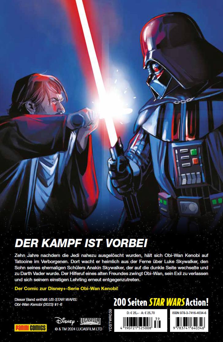 DER KAMPF IST VORBEI Zehn Jahre nachdem die Jedi nahezu ausgelöscht wurden, hält sich Obi-Wan Kenobi auf Tatooine im Verborgenen. Dort wacht er heimlich aus der Ferne über Luke Skywalker, den Sohn seines ehemaligen Schülers Anakin Skywalker, der auf die dunkle Seite wechselte und zu Darth Vader wurde. Der Hilferuf eines alten Freundes zwingt Obi-Wan, sein Exil zu verlassen und sich seinem einstigen Lehrling erneut entgegenzutreten. Der Comic zur Disney+-Serie Obi-Wan Kenobi! Dieser Band enthält US-STAR WARS: Obi-Wan Kenobi (2023) #1-6