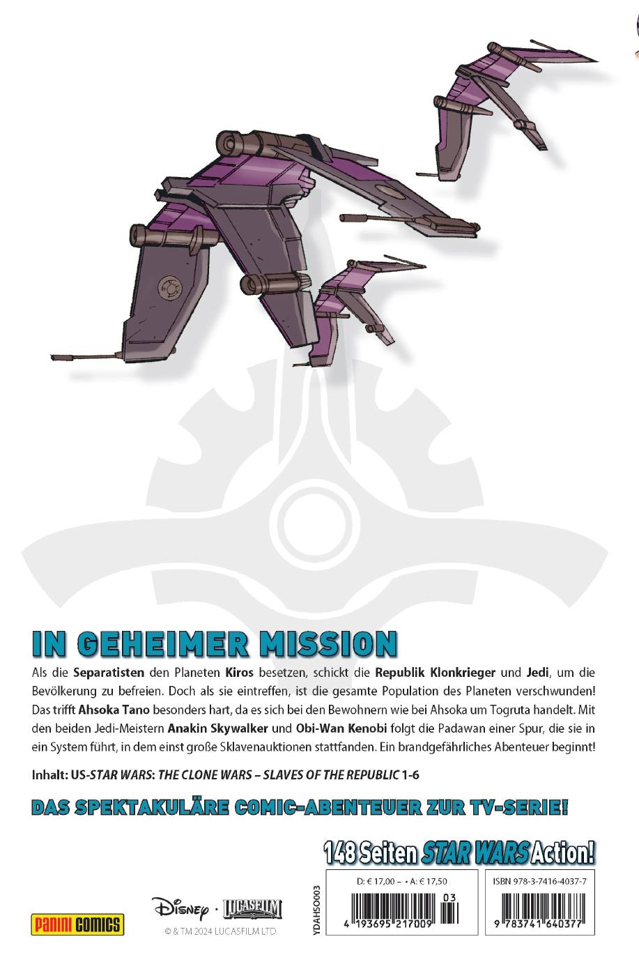 | Schlagworte | Ahsoka Tano • Anakin Skywalker • Ashoka • Comic • Comics • Disney+ • Disney plus • h24 • Jedi • Kiros • Obi-Wan Kenobi • Panini • Panini Comics • Star Wars • Star Wars Comics • The Clone Wars |