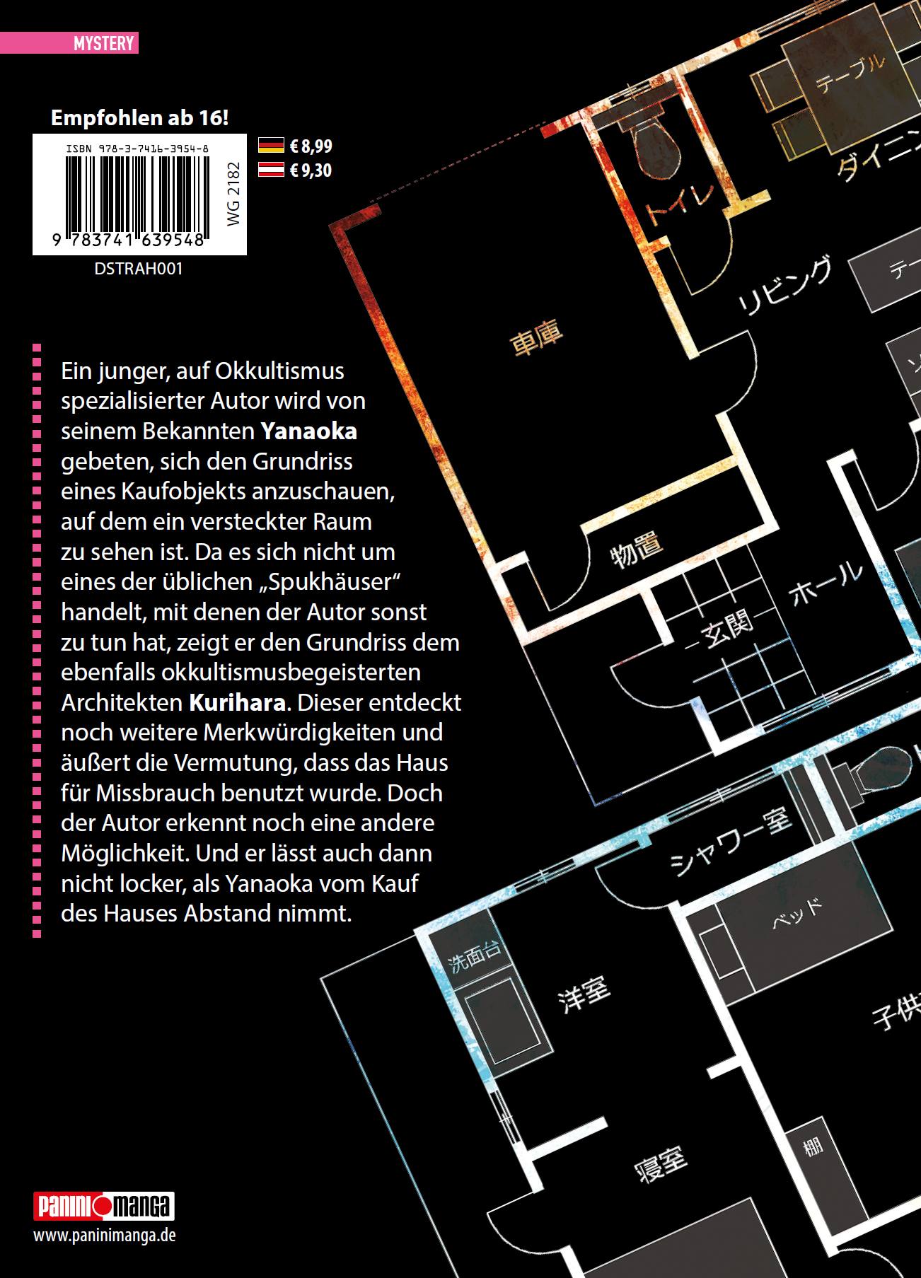 Begleite in diesem Manga einen jungen Autor bei seinen Nachforschungen zu einem mysteriöses Haus, das mehr verbirgt, als es auf den ersten Blick scheint. Mit jedem Kapitel enthüllt "The Strange House" eine Schicht nach der anderen seiner dunklen Geheimnisse, die dich bis zur letzten Seite fesseln wird.Dieser Manga ist nicht nur eine Geschichte - es ist eine Erfahrung, die dich in eine Welt voller Rätsel und scheinbar unerklärlicher Phänomene entführt. Mach dich bereit, in ein Abenteuer einzutauchen, das dich nicht mehr loslassen wird. Das erwartet dich in Band 1:Ein junger, auf Okkultismus spezialisierter Autor wird von seinem bekannten Yanagioka gebeten, sich den Grundriss eines Hauses und Kaufobjekts anzuschauen, auf dem ein versteckter Raum zu sehen ist. Da es sich nicht um eines der üblichen "Spukhäuser" handelt, mit denen der Autor sonst zu tun hat, zeigt er den Grundriss dem ebenfalls okkultismusbegeisterten Architekten Kurihara. Dieser entdeckt noch weitere Merkwürdigkeiten und äussert die Vermutung, dass das Haus für Missbrauch benutzt wurde. Doch der Autor erkennt noch eine andere Möglichkeit. Und er lässt auch dann nicht locker, als Yanagioka vom Kauf des Hauses Abstand nimmt.Für Fans von Horror-, Mystery- und Thriller-Manga!