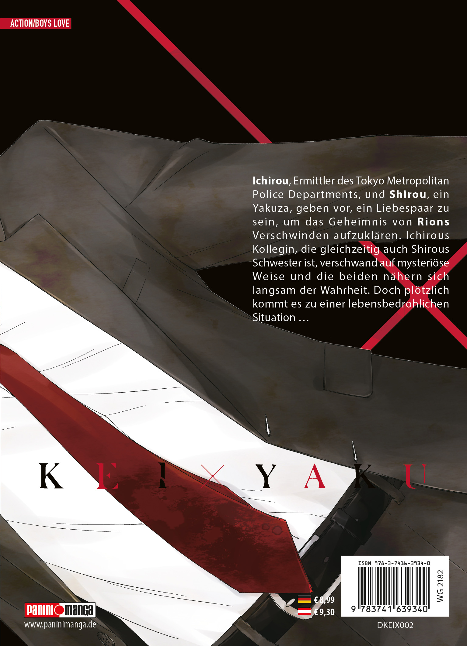KEI X YAKU erzählt die spannende Geschichte eines Polizisten und eines Yakuza-Mitglieds, die gezwungen sind, zusammenzuarbeiten, um eine gefährliche Verschwörung aufzudecken. Während sie ihre Differenzen überwinden, entwickeln sie eine unerwartete Bindung ... Erlebe die packende Dynamik und die tiefgründigen Charaktere in diesem fesselnden Manga!Das erwartet dich in Band 2: Ichirou, Ermittler des Tokyo Metropolitan Police Departments, und Shirou, ein Yakuza, geben vor, ein Liebespaar zu sein, um das Geheimnis von Rions Verschwinden aufzuklären. Ichirous Kollegin, die gleichzeitig auch Shirous Schwester ist, verschwand auf mysteriöse Weise und die beiden nähern sich langsam der Wahrheit. Doch plötzlich kommt es zu einer lebensbedrohlichen Situation ... Für Fans von Action-, Krimi-, Mystery- und Boys-Love-Manga!