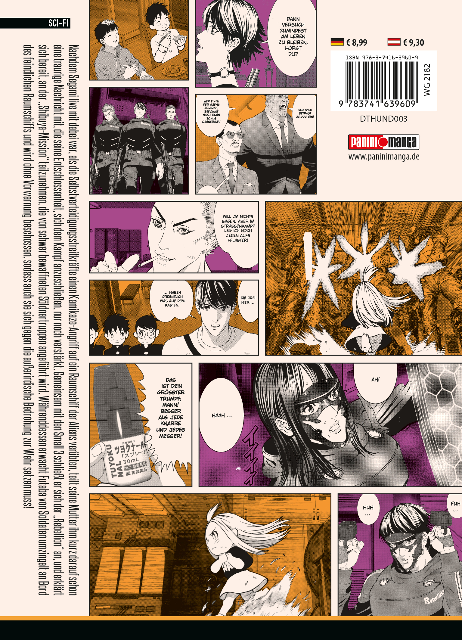 THUNDER 3 - Das ultimative Manga-Abenteuer im Multiversum!Begleite drei Freunde, die aus einem klassischen Gag-Manga im Retro-Look in eine hyperrealistische Sci-Fi-Welt im Gantz-Stil springen, um die kleine Schwester von einem der Jungen zu retten. Auf ihrem Abenteuer werden sie allerdings nicht nur mit gefährlichen Gegnern, skurrilen Situationen und überraschenden Wendungen konfrontiert ...Das erwartet dich in Band 3:Segami, ein Universitätsstudent, wird Zeuge eines Selbstmordattentats der Selbstverteidigungskräfte - die Rebellion der Menschen gegen die Aliens beginnt! Gemeinsam mit den Small 3 schließt er sich dem Widerstand an und kämpft auf der Seite der Gerechtigkeit in einem atemberaubenden Guerillakrieg gegen die außerirdischen Invasoren! Die "Shibuya-Mission" wird ins Leben gerufen! Währenddessen findet Futaba sich an Bord eines außerirdischen Raumschiffs wieder, umzingelt von bewaffneten Soldaten. Mutig stellt sie sich ihren Angreifern entgegen, um für ebenfalls ihre eigene Freiheit einzustehen! Wie weit sind die Schicksale von Menschen und Aliens schon miteinander verstrickt? Und wird es ein Zurück in die "normale Welt" geben?Für Fans von Action-, Abenteuer- und Sci-Fi-Manga!