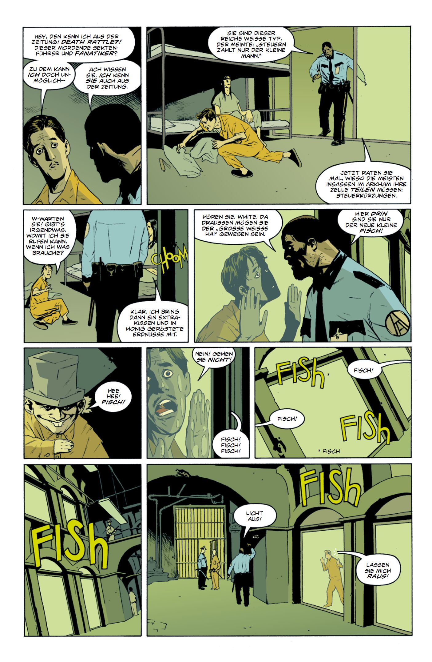 IN ARKHAM IST DIE HÖLLE LOS … von Christian Endres Jahrzehntelang war das Arkham Asylum die Hochsicherheitsanstalt, in der Gotham Citys größte und wahnsinnigste Superschurken landeten, nachdem Batman, Robin und Co. sie wieder einmal besiegt, wieder einmal dingfest gemacht hatten. In der jüngeren Comic-Vergangenheit der 2020er, zu Beginn der Ära Infinite Frontier, wurde das außerhalb Gothams gelegene Arkham Asylum allerdings zerstört und durch den Arkham Tower im Herzen der Metropole ersetzt. Trotz dieser Entwicklung wird das Arkham Asylum, auch dank seiner vielen „Auftritte“ in anderen Medien, immer ein wichtiger Bestandteil der Bat-Mythologie sein. Bis 1974 landeten Batmans Gegenspieler noch in anderen Gefängnissen und Anstalten. Erst im Oktober 1974 führten Autorenlegende Dennis O’Neil und Zeichner Irv Novick im US-Heft Batman 258 das Arkham Asylum als psychiatrische Anstalt mit Gefängnischarakter ein. Fortan gingen beispielsweise der Killerclown Joker, Pflanzenflüsterin Poison Ivy, der bipolare Two-Face, Alligatormann Killer Croc und andere dort ein und aus. Gelang ihnen die Flucht, sammelten Batman und seine Verbündeten sie wieder ein. Außerdem wurde die Psychiaterin Dr. Harleen Quinzel in Arkham vom Joker, den sie eigentlich therapieren sollte, „umgedreht“ und so zu Harley Quinn. In den 1980ern war es vor allem Top-Autor Len Wein, der die Mythologie der Anstalt ausbaute, und 1989 legten Grant Morrison und Dave McKean den einflussreichen Graphic-Novel-Bestseller Batman: Arkham Asylum vor. In dessen Tradition steht auch der vorliegende Band, der 2003 ursprünglich in Form von sechs Einzelheften erschien, geschrieben vom heutigen Bestsellerautor Dan Slott und gezeichnet von Ausnahmekünstler Ryan Sook. Auch bei ihnen stehen das düstere Arkham Asylum, sein geplagtes Personal und die verrückten Insassen im Vordergrund. Um den albtraumhaften, unberechenbaren Wahnsinn in Arkham zu erforschen, führten Slott und Sook mit Warren White sogar eine neue Figur ein, die man heute als den Großen Weißen Hai kennt. Hier erfahrt ihr nun, wie seine Geschichte begann …
