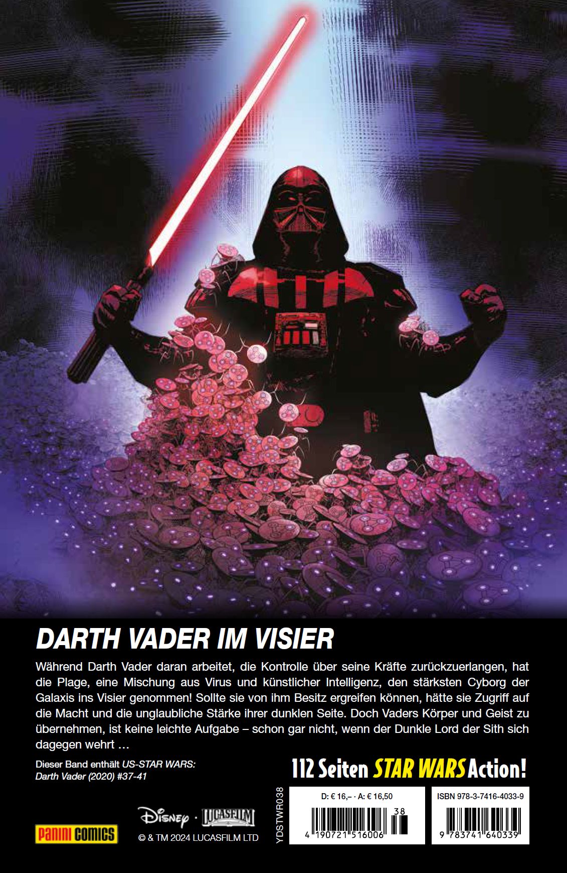 Die Plage, eine Mischung aus Virus und künstlicher Intelligenz, hat den stärksten Cyborg der Galaxis ins Visier genommen: Darth Vader. Sollte sie von ihm Besitz ergreifen können, würde sie damit Zugriff auf die Macht und die unglaubliche Stärke ihrer dunklen Seite erlangen. Vader wehrt sich, indem er seinen Hass erforscht und sich auf die Lektionen seiner Lehrmeister Qui-Gon Jinn und Obi-Wan Kenobi zurückbesinnt. Wird Vader von der Plage übernommen oder kann er sie besiegen?Enthält Darth Vader #37-41