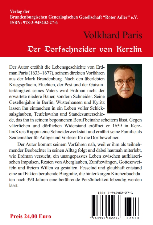 väterlichen und dörflichen Widerstand eröffnet er 1659 in Kerz-lin/Kreis Ruppin eine Schneiderwerkstatt und ernährt seine Familie als Seidennäher für Adlige und Vorleser für die Dorfbewohner.