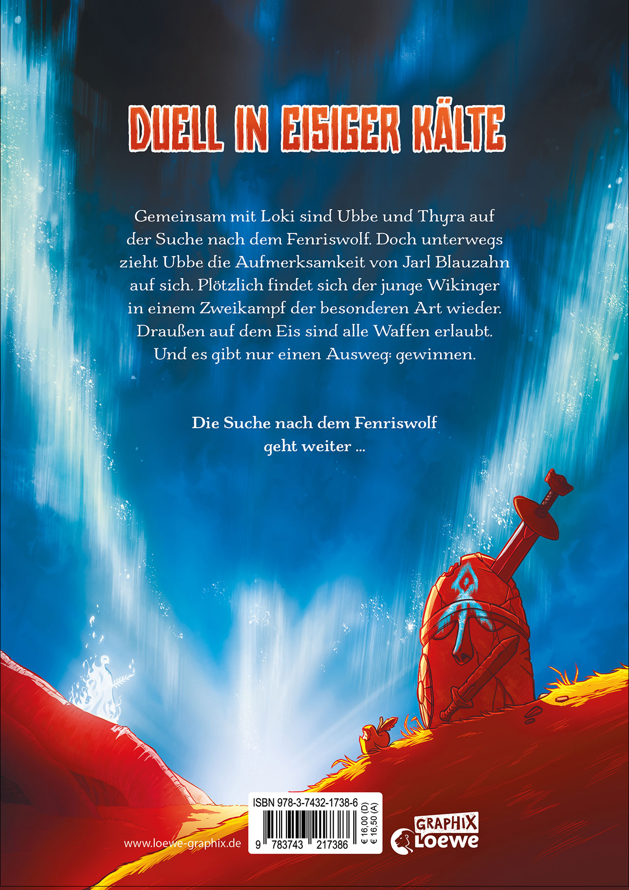 Gemeinsam mit Loki sind Ubbe und Thyra auf der Suche nach dem Fenriswolf, der Ubbes Mutter getötet hat. Doch unterwegs zieht Ubbe die Aufmerksamkeit von Jarl Blauzahn auf sich. Ehe er sich's versieht, findet der junge Wikinger sich in einem Zweikampf der besonderen Art wieder. Draußen auf dem Eis sind alle Waffen erlaubt. Und es gibt nur einen Ausweg: gewinnen.