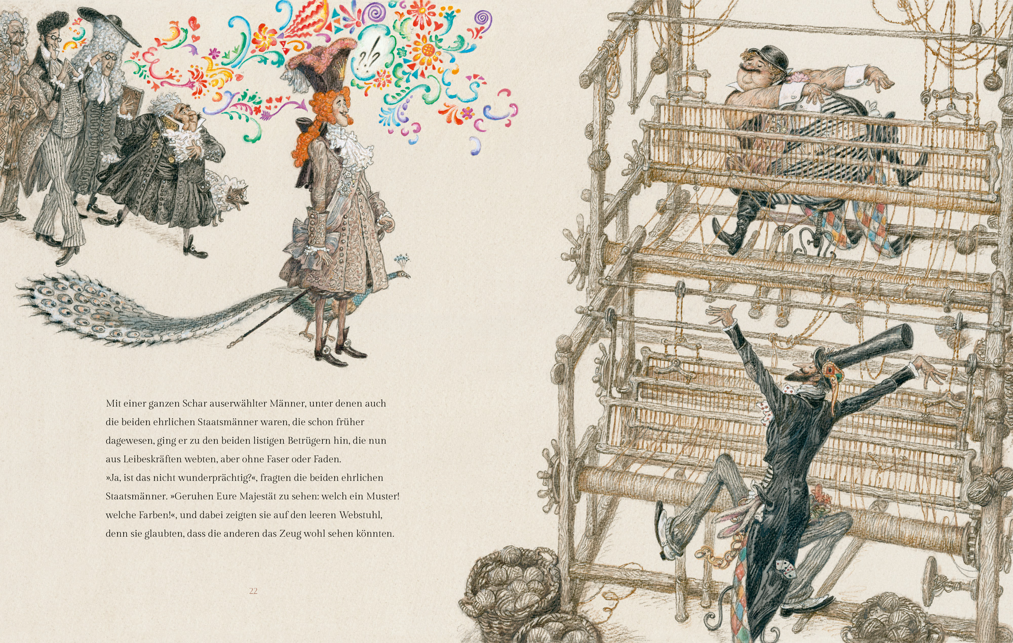 Ein zeitloser Klassiker voller Witz und HintersinnEs war einmal ein Kaiser. Er liebte schöne Kleidung über alles. Keiner wagte es ihm zu widersprechen. Doch wo Sonne, da auch Schatten. Es umschwirrten ihn Heuchler und Höflinge. Eines Tages kamen zwei Fremde in die Stadt. Sie boten dem Kaiser etwas ganz Besonderes an: Kleider aus einem Zauberstoff zu weben, der Dummheit und Untauglichkeit entlarvt. Wer würde solch einer Versuchung widerstehen?Diese zeitlose und immer wieder aktuelle Geschichte wurde vom großen dänischen Märchendichter Hans ChristianAndersen erzählt und vom brillanten Buchkünstler Anton Lomaev illustriert. Die einzigartigen Charaktere aus Andersensunsterblicher Erzählung erwachen in Lomaevs Illustrationen voll spannender Details und leuchtender Farben zum Leben.