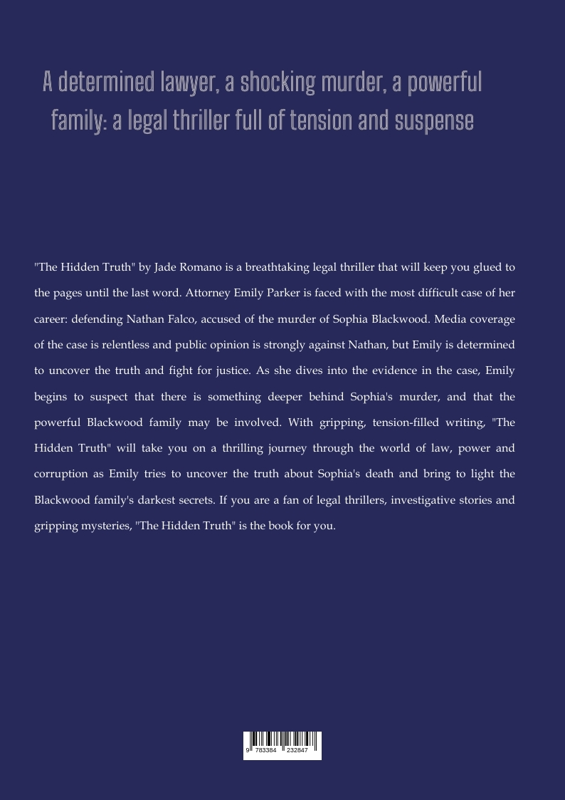 Jade Romano é uma autora emergente no cenário literário americano, conhecida por seu estilo de escrita cativante e emocionante. Nascida e criada nos Estados Unidos, Jade sempre teve uma grande paixão pela leitura e pela escrita, desde criança. Depois de se formar em Literatura Inglesa, Jade começou a trabalhar como jornalista, lidando com resenhas de livros e entrevistas com autores emergentes. Mas sua verdadeira paixão continuou sendo a escrita e por isso, ela decidiu se dedicar a escrever histórias de suspense. Seu primeiro livro, um romance de suspense intitulado "The Hidden Truth" (A verdade oculta), foi publicado recentemente e foi um sucesso imediato tanto para o público quanto para a crítica. O livro é caracterizado por um enredo envolvente e surpreendente e por personagens complexos e multifacetados. Jade Romano é considerada uma das autoras mais promissoras do cenário de suspense americano, e suas histórias são apreciadas pelos leitores por sua capacidade de mantê-los grudados nas páginas até a última linha. Além de escrever, Jade também se dedica ao ensino da escrita criativa, realizando cursos e workshops para aspirantes a escritores. Sua escrita, caracterizada por um estilo fluido e cativante, é capaz de criar atmosferas sombrias e perturbadoras, mas também de proporcionar momentos de grande tensão e suspense. Embora ainda esteja no início de sua carreira, Jade Romano já mostrou que tem um grande talento e uma grande paixão pela escrita, e temos certeza de que ouviremos falar muito dela no futuro.