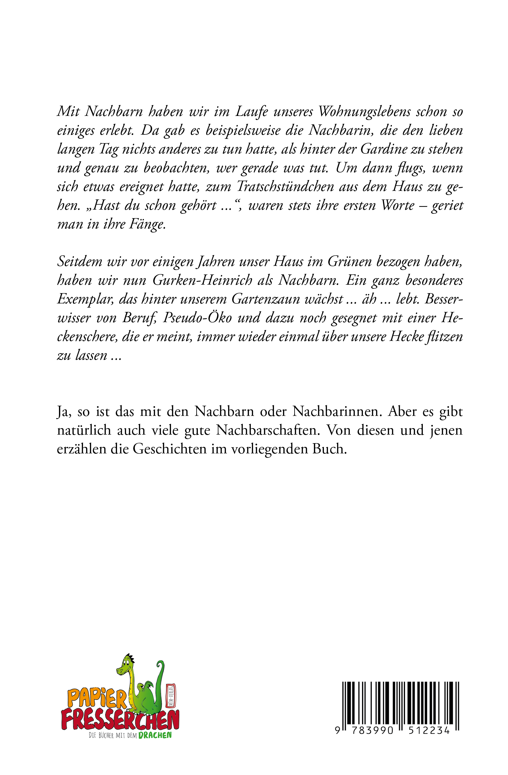 Ja, so ist das mit den Nachbarn oder Nachbarinnen. Aber es gibt natürlich auch viele gute Nachbarschaften. Von diesen und jenen erzählen die Geschichten im vorliegenden Buch.