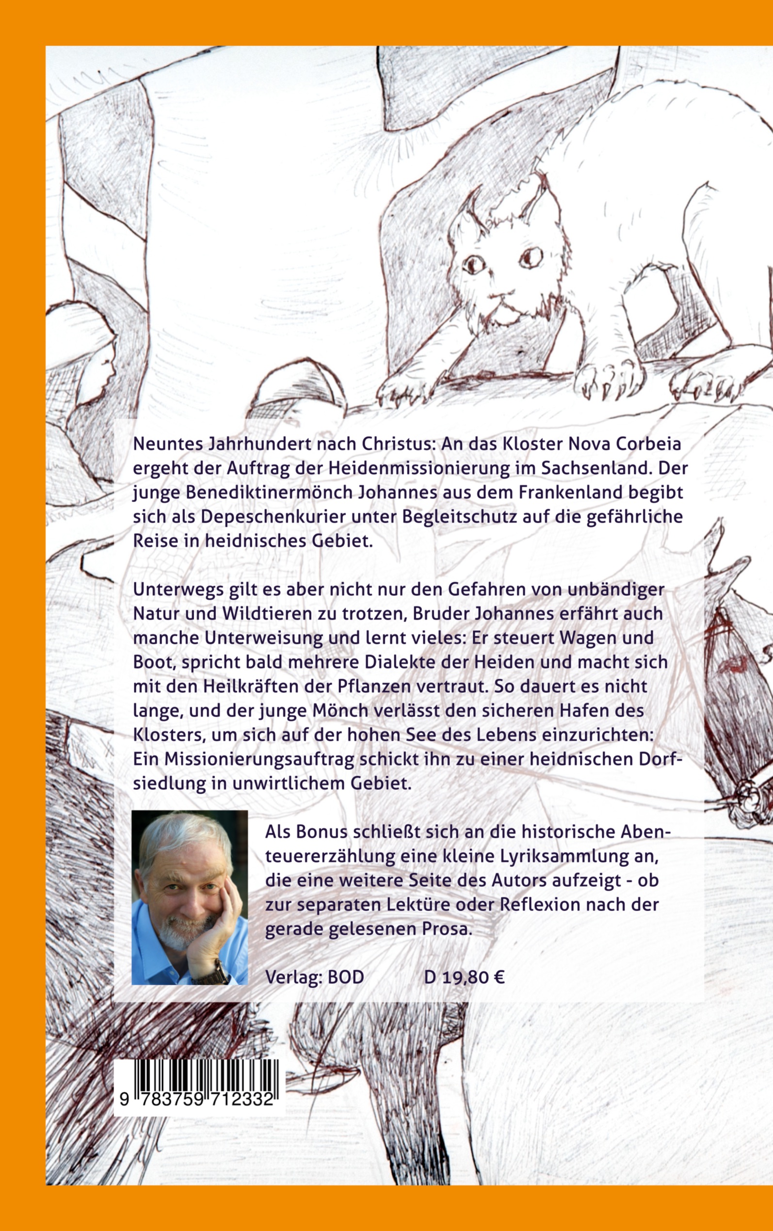 Abenteuer im Sachsenland: Die gefährliche Mission eines jungen Mönchs im Norddeutschland des frühen Mittelalters Neuntes Jahrhundert nach Christus: Das Kloster Nova Corbeia erhält den Auftrag zur Missionierung im Sachsenland. Der junge Benediktinermönch Johannes aus dem Frankenland begibt sich als Depeschenreiter, begleitet von einem Schutztrupp, auf eine gefährliche Reise ins heidnische Gebiet. Auf dem Weg muss Johannes nicht nur den Gefahren der unbändigen Natur und wilden Tieren trotzen. Er erfährt auch wertvolle Unterweisungen und lernt vieles: Er steuert Wagen und Boot, spricht bald mehrere Dialekte der Heiden und macht sich mit den Heilkräutern vertraut. Schon bald verlässt der junge Mönch die sichere Klosterwelt und stellt sich den Herausforderungen des Lebens. Ein neuer Missionierungsauftrag führt ihn zu einer heidnischen Dorfsiedlung in unwirtlichem Gebiet.
