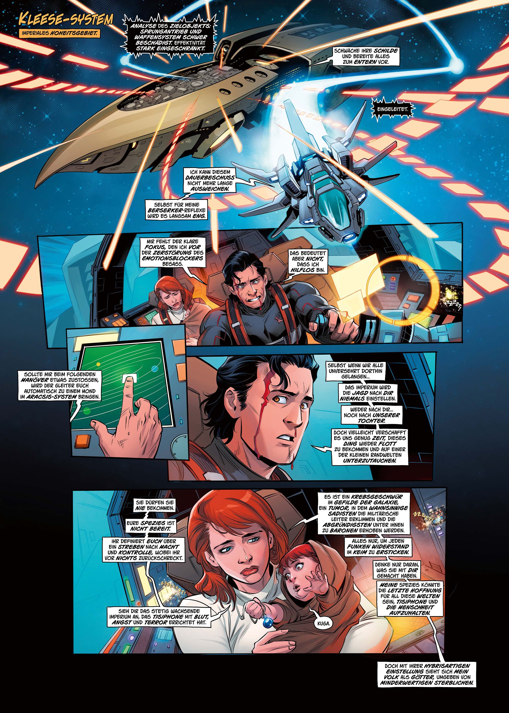 Nica, ihr Freund Yago und ihr treuer Roboterbegleiter Cricket sind nur knapp dem brutalen Angriff des sadistischen Barons entkommen. Dabei mussten sie mitansehen, wie Nicas Onkel Rolf und Yagos Familie getötet wurden. Ihre Flucht führt sie ins Okironsystem, wo sie auf dem Dschungelplaneten Tarazaan auf eine abtrünnige imperiale Kriegerin treffen. Doch auf Tarazaan lauern tödliche Gefahren, was Yago schmerzhaft feststellen muss, als er von einem tödlichen Insekt gestochen wird. Nica weiß, dass sie keine Zeit zu verlieren hat. Yagos einzige Rettung liegt tief im Dschungel von Tarazaan, inmitten furchterregender Kreaturen und Gefahren, die man sich nicht einmal in seinen wildesten Alpträumen ausmalen könnte. Und die Häscher der Imperatorin sind ebenfalls nicht fern...
