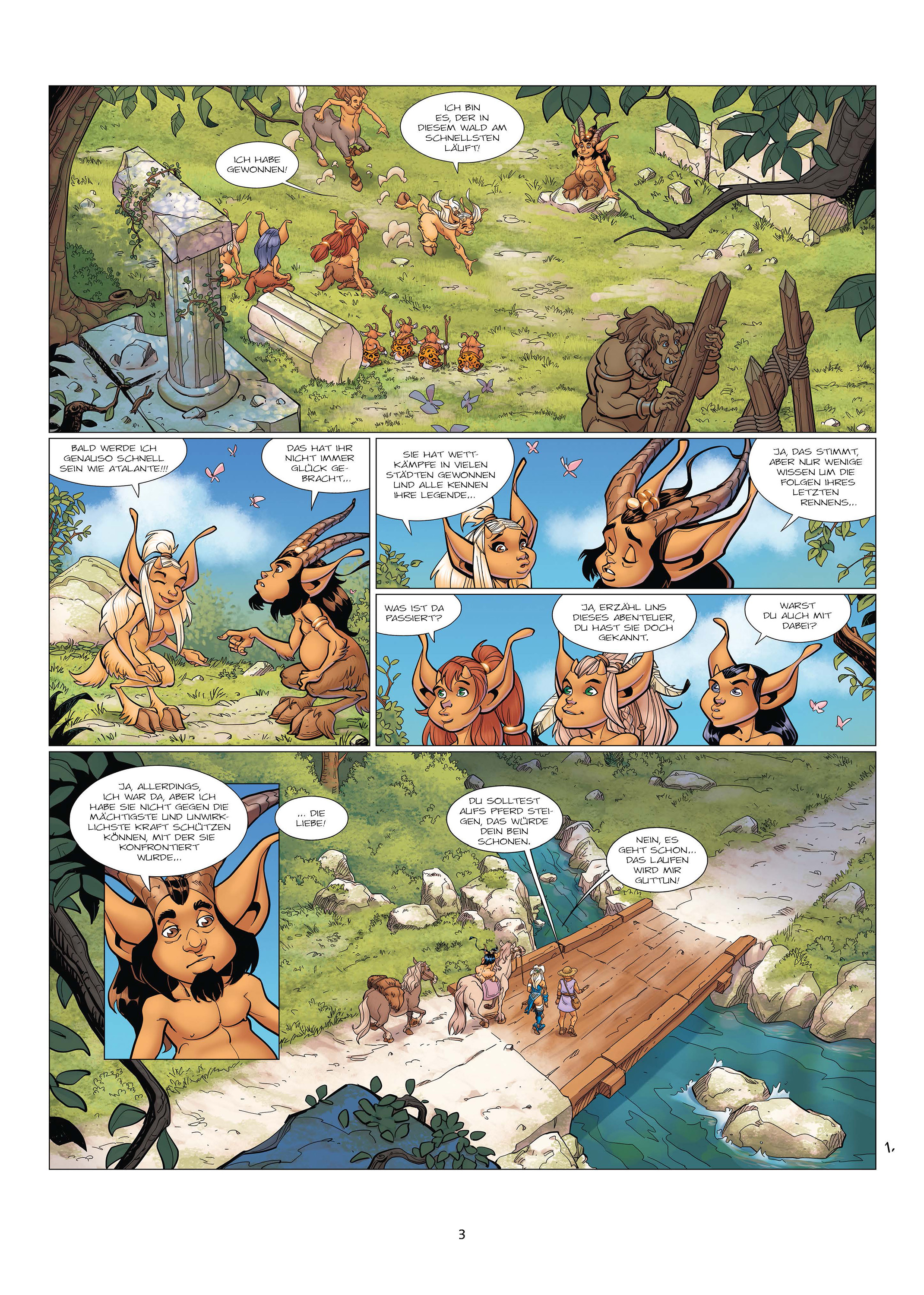 Atalante nimmt an ihrem letzten Rennen teil und verspricht, denjenigen zu heiraten, dem es gelingt, sie zu besiegen. Jedoch lässt sie sich mit Absicht von einem Teilnehmer schlagen, der ihr Herz erobert hat. Als das junge Paar im Tempel der Aphrodite sündigt, ziehen sie den Zorn der Göttin auf sich und werden in Löwen verwandelt. Alle Welt und auch ihr treuer Begleiter Pyros befürchten das Schlimmste…