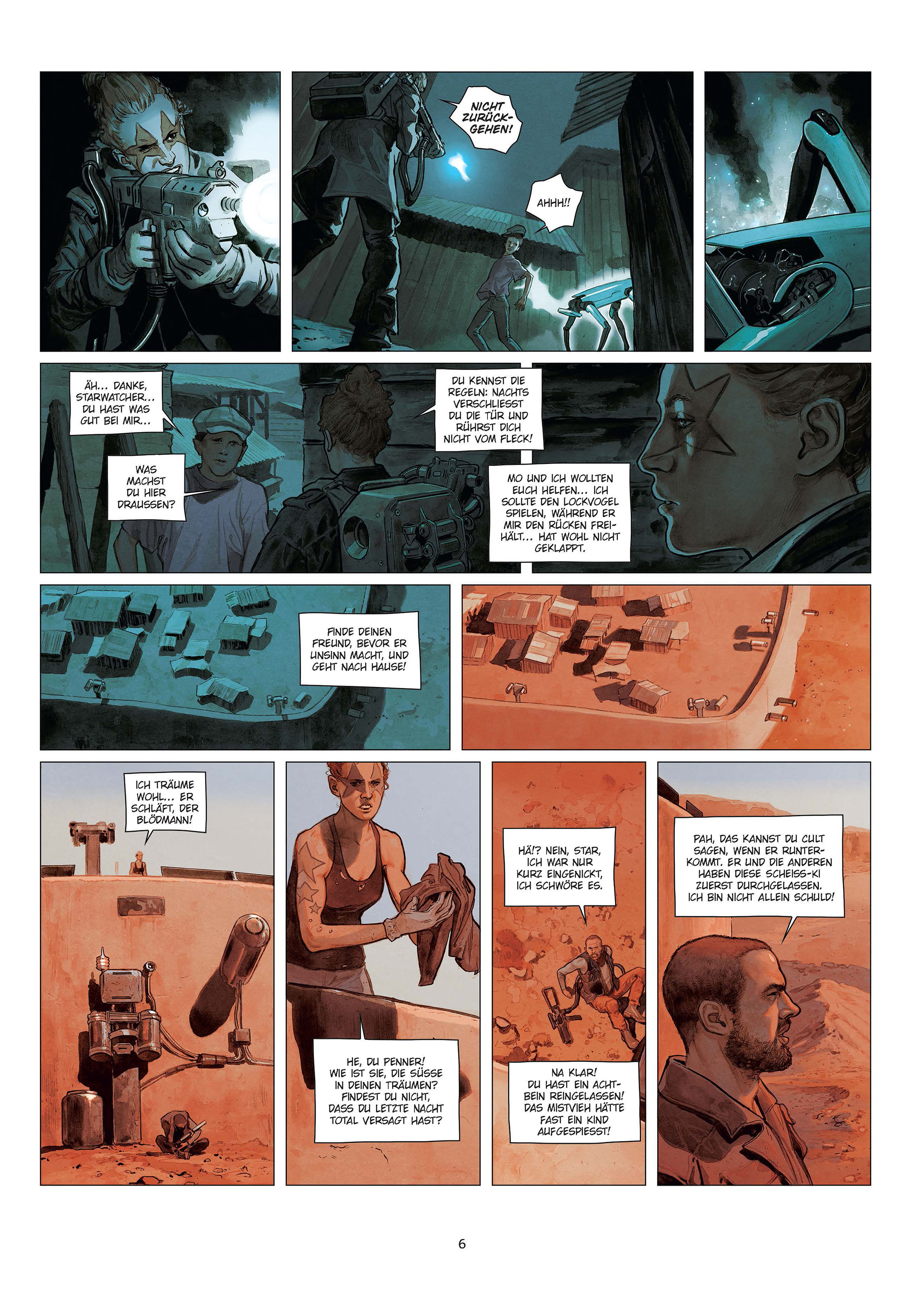 In einem Endzeit-Szenario, das seine Anlehnung an »Mad Max« nicht verhehlen kann, nimmt Jaouen (»Eternum«) uns mit auf eine Reise ins Metaphysische, ins Übersinnliche. Seine kraftvollen Zeichnungen und perfekt komponierten Seitenlayouts zeigen mit Nachdruck, wie ein Höhepunkt der Comic-SciFi aussieht.
