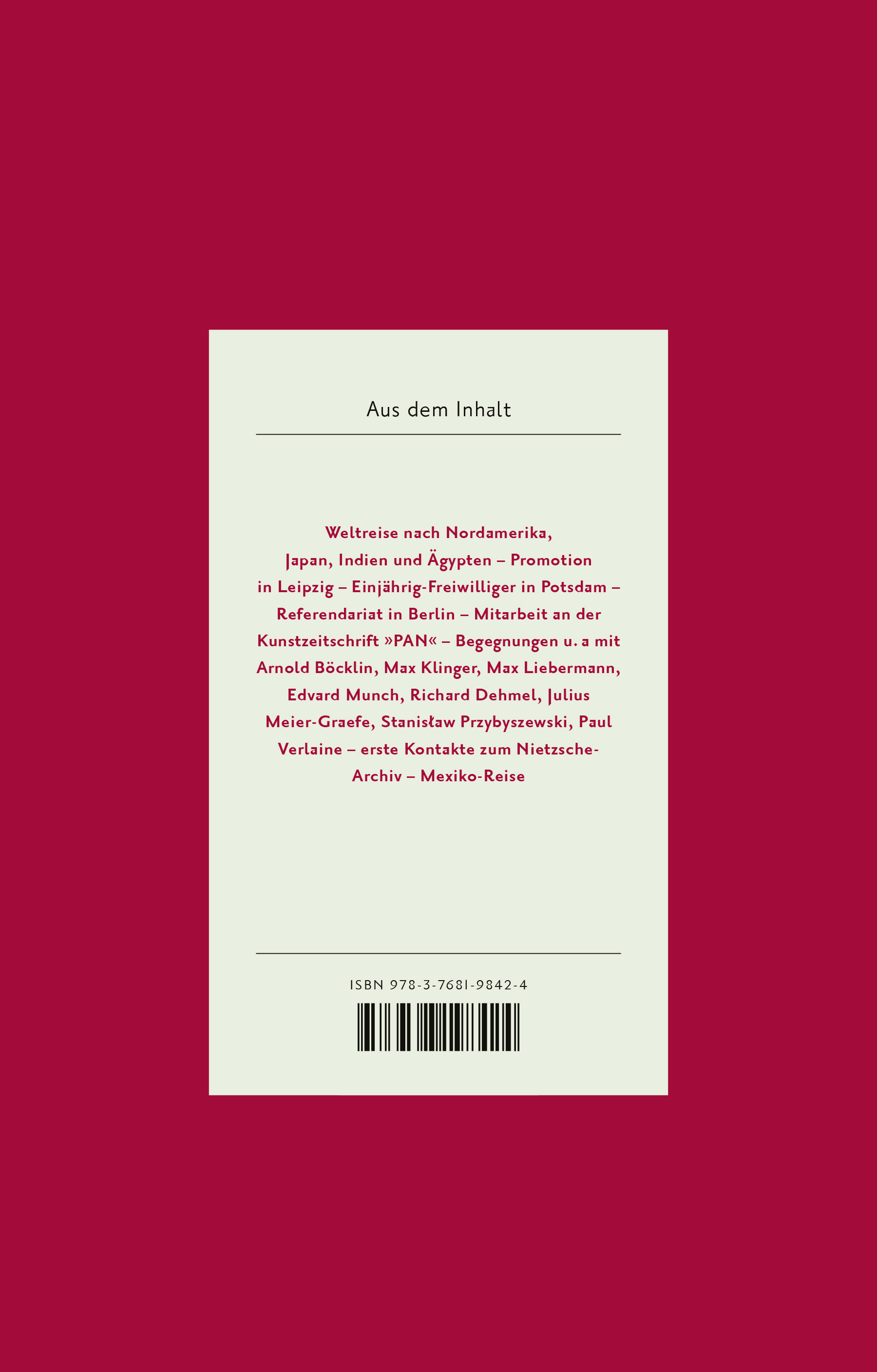 Band 2, mit dem die Edition beginnt, setzt ein mit einem frühen Höhepunkt - Kesslers Weltreise (1892) nach Nordamerika, Japan, China, Indien und Ägypten, gefolgt von Notizen von seiner Mexiko-Reise, Grundlage für Kesslers erstes selbständiges Buch. - Weitere Stichworte dieses Bandes: Die Promotion, die Militärdienstzeit in Potsdam, die Gründung der berühmten Zeitschrift »PAN«, erste Kontakte zum Nietzsche-Archiv und Begegnungen in Deutschland, Frankreich und Italien.