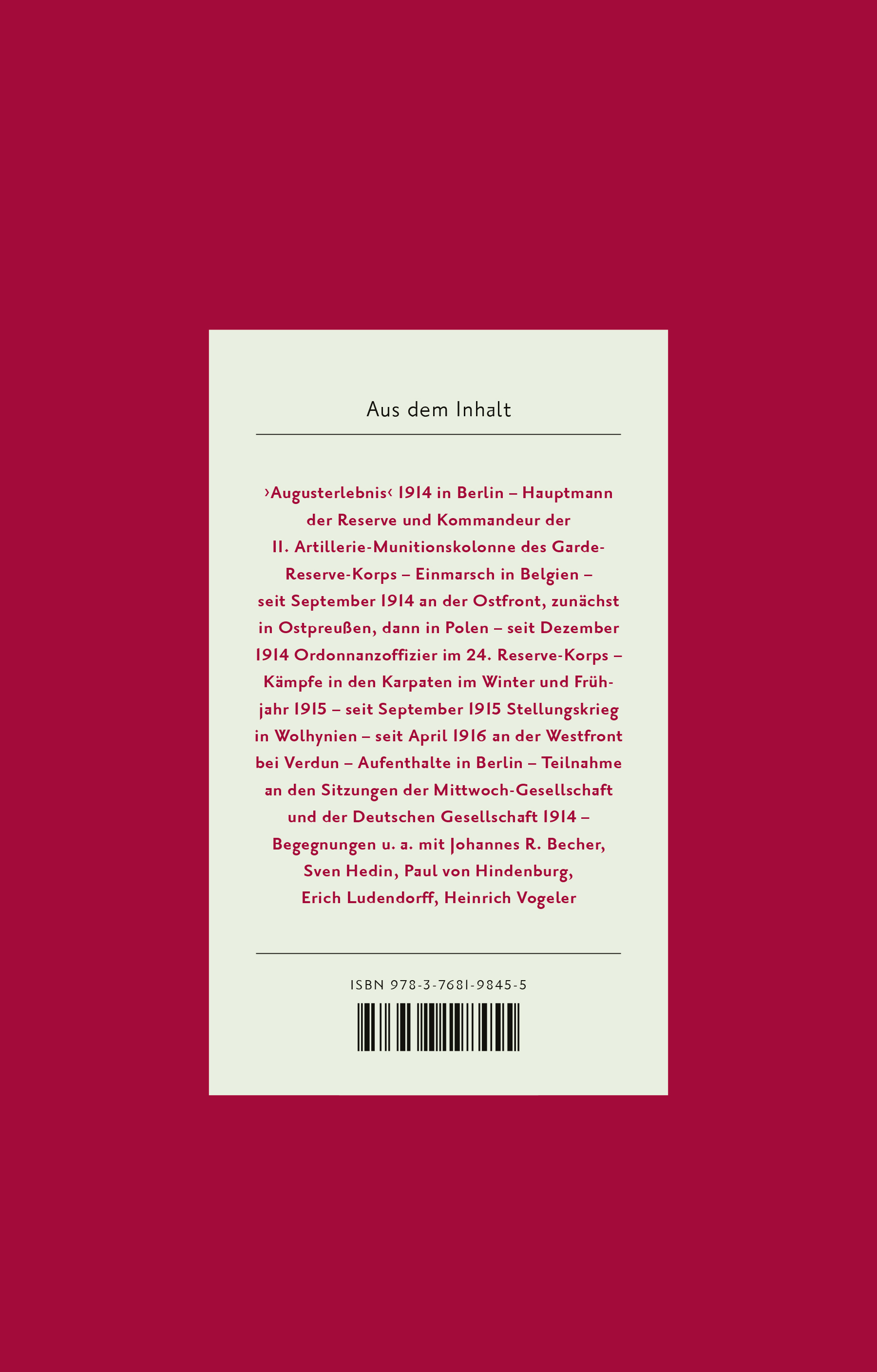Die eigenwillige Mischung aus Kriegschronik, Lage- und Stimmungsbericht von der Front, Landschaftsskizze und Abenteuergeschichte macht Kesslers Kriegserlebnisse zu einer faszinierenden Lektüre. Immer wieder und fast beiläufig eingestreut finden sich im Text Schreckensbilder des Krieges - mit Leichen übersäte Schlachtfelder, zerstörte Dörfer, hungernde Flüchtlinge. In Kesslers Tagebuch spiegeln sich nahezu alle wichtigen militärischen Ereignisse der ersten Hälfte des Ersten Weltkriegs. Im Mittelpunkt stehen zudem Begegnungen mit Zeitgenossen wie Paul von Hindenburg, Erich Ludendorff oder auch Johannes R. Becher. Kesslers Weltkriegstagebuch ist eine faszinierende Quelle, welche die Forschung zum Ersten Weltkrieg beeinflussen und bereichern wird.