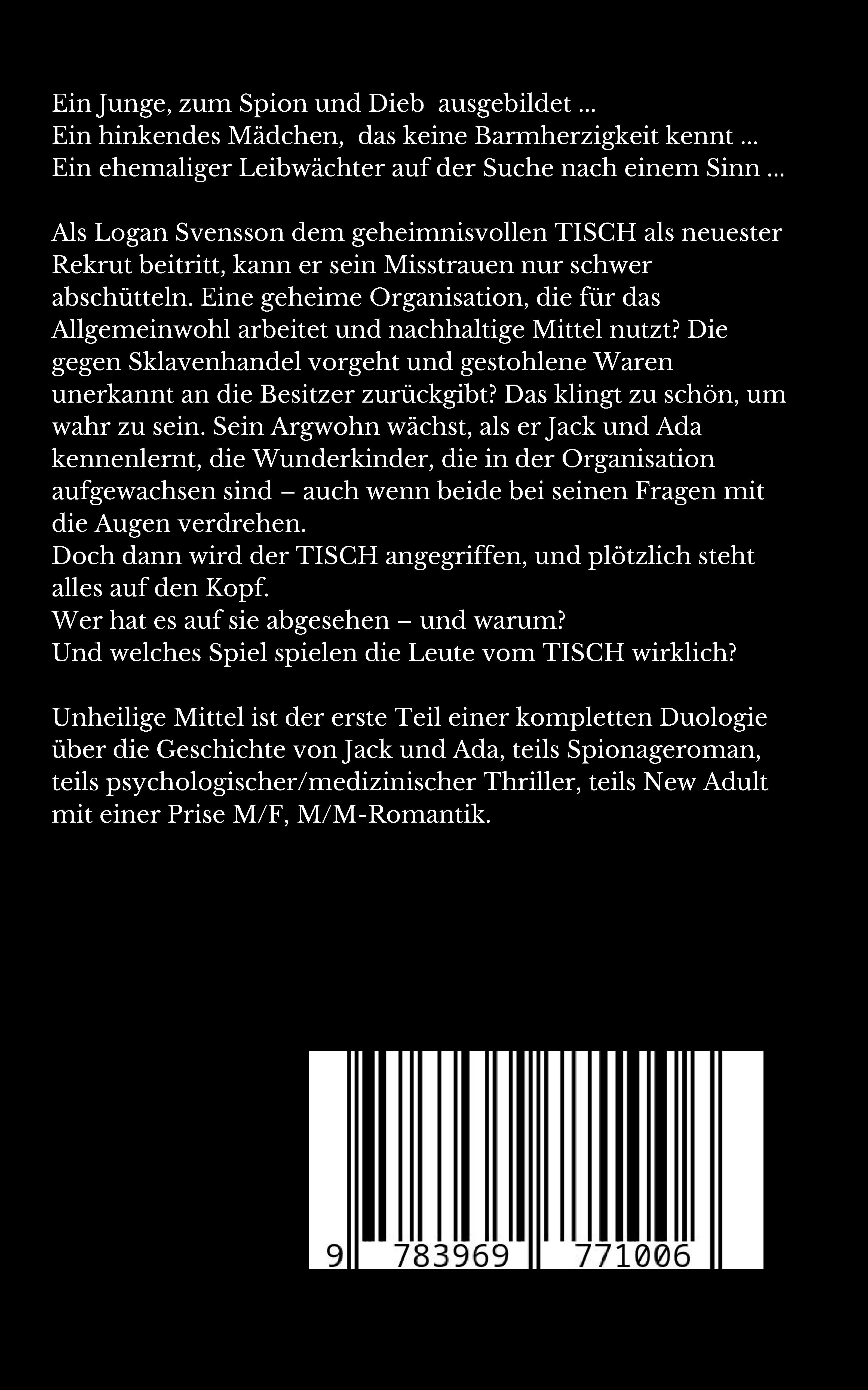 Ein Junge, ausgebildet zum Spion und Dieb ...Ein hinkendes Mädchen, das keine Barmherzigkeit kennt ...Ein ehemaliger Leibwächter auf der Suche nach einem Sinn ...Als Logan Svensson dem geheimnisvollen TISCH als neuester Rekrut beitritt, kann er sein Misstrauen nur schwer abschütteln. Eine geheime Organisation, die für das Allgemeinwohl arbeitet und nachhaltige Mittel nutzt? Die gegen Sklavenhandel vorgeht und gestohlene Waren unerkannt an die Besitzer zurückgibt? Das klingt zu schön, um wahr zu sein. Sein Argwohn wächst, als er Jack und Ada kennenlernt, die Wunderkinder, die in der Organisation aufgewachsen sind - auch wenn beide bei seinen Fragen mit die Augen verdrehen.Doch dann wird der TISCH angegriffen, und plötzlich steht alles auf den Kopf.Wer hat es auf sie abgesehen - und warum?Und welches Spiel spielen die Leute vom TISCH wirklich?
