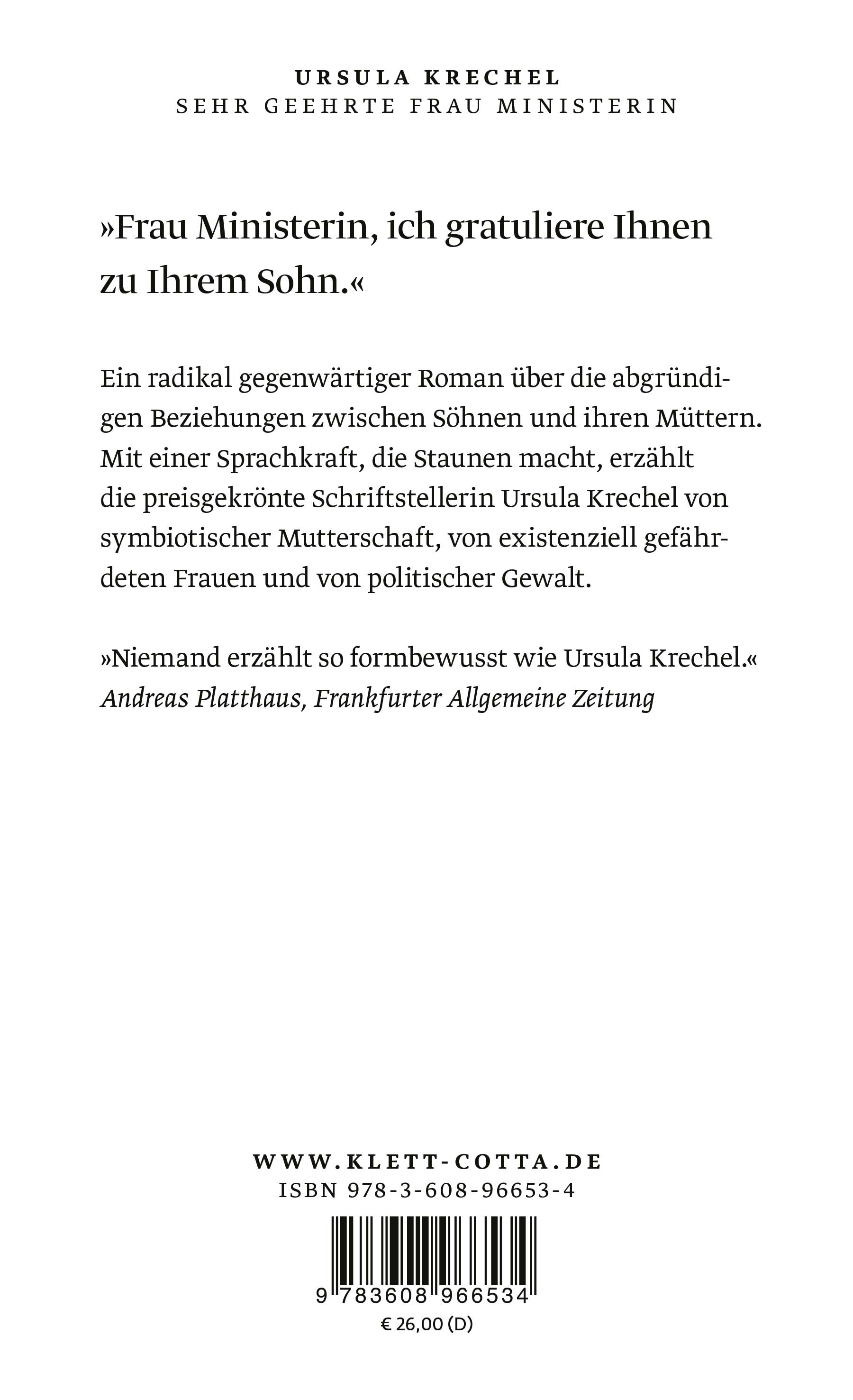 | Schlagworte | Belletristik 2025 • Buchpreisträgerin • Deutsche Literatur • Deutscher Buchpreis • deutsche Schriftstellerin • Druckfrisch • Feminismus • Georg Büchner Preis • Gewalt • In Druckfrisch empfohlen • Justizministerin • Landgericht • Literatur 2025 • Macht • Mutterschaft • Mütter und Söhne • neue Romane 2025 • Neuerscheinung 2025 • Politik • Schmerzen der Frauen |