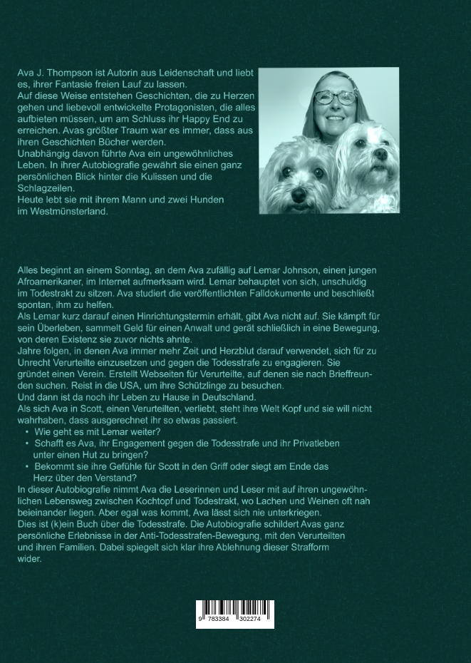 Ava J. Thompson ist Autorin aus Leidenschaft. Fasziniert davon, wie sich Menschen in außergewöhnlichen Lebenssituationen verhalten, treibt sie auch die Protagonisten ihrer Geschichten immer wieder in Extremsituationen, in denen sie sich beweisen müssen. Melvin, der Protagonist des ersten Teils ihrer Romanreihe, sagt einmal in einem Interview: »Meine Songs sind Gefühle tief da drin. Irgendwann sind sie so stark, dass sie raus müssen. So verwandeln sie sich in Songs.« Genauso verhält es sich bei Ava mit ihren Geschichten. Dieses kleine Beispiel zeigt, dass sich in der fiktiven Romanreihe auch ab und zu ein Fünkchen Realität wiederfindet. Ava erschafft Charaktere mit psychologischer Tiefe. Daher gibt es auch nicht „den Bösewicht“, sondern stets eine Geschichte dahinter. Die Figuren haben Ecken und Kanten und auch schon mal spezielle Marotten. Lebensnähe ist ihr so wichtig, dass sie im Falle von Melvins Geschichte auch schon mal gefragt wurde, ob es sich nicht doch um eine wahre Geschichte aus dem Musikbusiness handele. Die Romane aus Avas Feder spielen überwiegend in den USA, die für die Autorin viele Jahre wie eine zweite Heimat waren. Sie reist generell gern und vorzugsweise allein. So besucht sie die Schauplätze ihrer Geschichten, um Land und Leute kennenzulernen und ein Gefühl für sie zu bekommen. Ihre Romanhandlungen finden sich auch im geschichtlichen Kontext wieder, wofür sie tiefgründig recherchiert. Egal, ob es um die politischen Wirren in Eduardo Garcias Heimatland oder um die so genannte „Rattenlinie“, auf der hochrangige Nazis nach Argentinien flüchteten oder später um die Geschehnisse des 11. September geht, Ava lässt ihre Figuren in möglichst authentischem geschichtlichem Umfeld agieren. Nicht zuletzt profitiert ihre niemals an Grenzen stoßende Phantasie von ihrem eigenen bewegten Leben, das sie selbst auch immer mal extreme Situation erleben ließ. Tauchen Sie ab in die Welt von Ava J. Thompson und erleben Sie, welche Abgründe die Protagonisten überwinden müssen, bis sich ihre ganz eigene Sehnsucht erfüllt. Ava J. Thompson ist Mitglied im Selfpublisher-Verband.