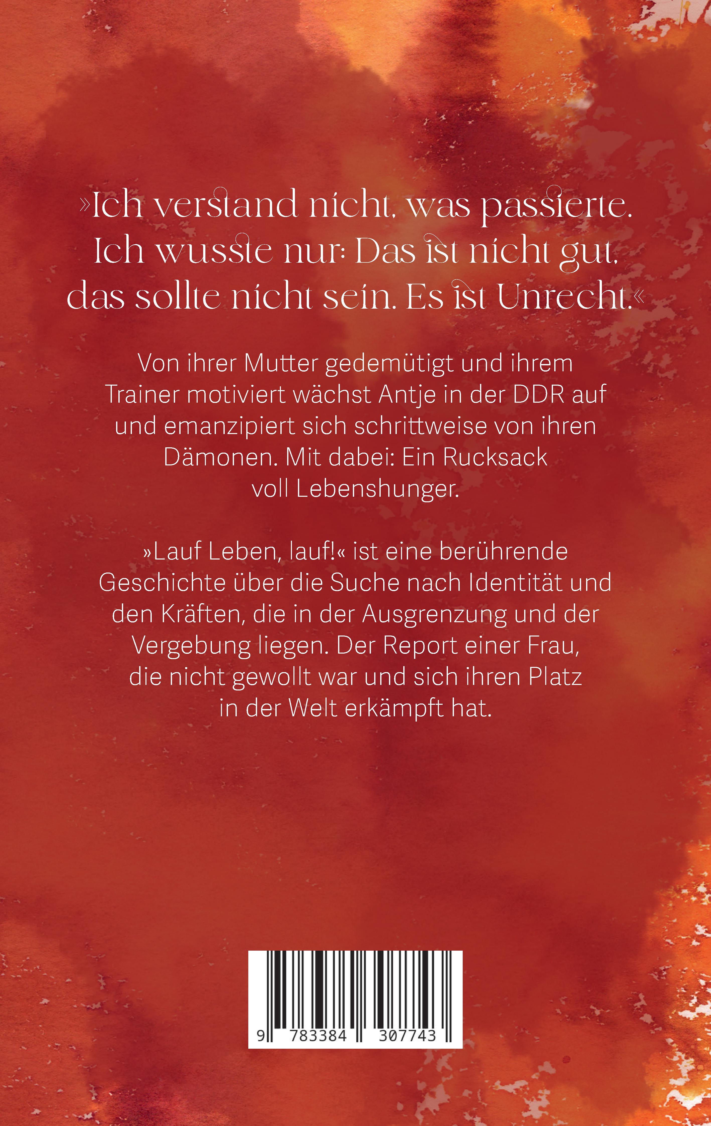 »Ich verstand nicht, was passierte. Ich wusste nur: Das ist nicht gut, das sollte nicht sein. Es ist Unrecht.« - Von ihrer Mutter gedemütigt und ihrem Trainer motiviert wächst Antje in der DDR auf und emanzipiert sich schrittweise von ihren Dämonen. Mit dabei: Ein Rucksack voll Lebenshunger! - - Schritt für Schritt zur Selbstbehauptung: Antjes Reise in die Unabhängigkeit - - Von klein auf ungeliebt von der eigenen Mutter? Schon früh wird Antje bewusst, dass sie an zweiter Stelle hinter ihrem großen Bruder kommt. Je älter sie wird, desto deutlicher wird der Familienkonflikt. Ihre Rettung ist der Sport; ihr Trainer wird zu einer Art Ersatz-Vater. - - Suna Geiger erzählt in ihrem spannenden Roman die Geschichte eines Mädchens, das in der DDR unter schwierigen Familienverhältnissen aufwächst, aber unbezähmbaren Lebenshunger beweist. - - In "Lauf Leben, lauf!" geht es um Identitätssuche in Ostdeutschland, um Antjes Weg zur Freiheit. Es geht um die schrittweise Vergebung und die schwierige Abgrenzung zur Mutter. Und das Werk ist ein Debattenbeitrag zur politischen Situation in Deutschland - besonders mit Blick auf Ostdeutschland und den Teil der ehemaligen DDR. - - Was von der schweren Kindheit bleibt? Längst erwachsen und doch nicht darüber hinweg, was ihr als Mädchen widerfahren ist: Was Antje als Kind an Demütigungen von ihrer Mutter erfahren hat, prägt sie. Aber ihr unbändiger Wille, aus dem unglücklichen Leben auszubrechen, kann durch nichts gebrochen werden. - - Suna Geigers Romandebüt ist mehr als ein Familienroman. Ihr Buch liefert Impulse zur Diskussion über die politische Situation in Deutschland und Ostdeutschland. Sie berichtet aus der Zeit der Wiedervereinigung, die sich wie eine Übernahme angefühlt hat, und knüpft Bezüge zu den Geschehnissen in Rostock-Lichtenhagen. Das alles verpackt sie in eine Geschichte über Identität, Verzweiflung, Hingabe - und die Ostsee!